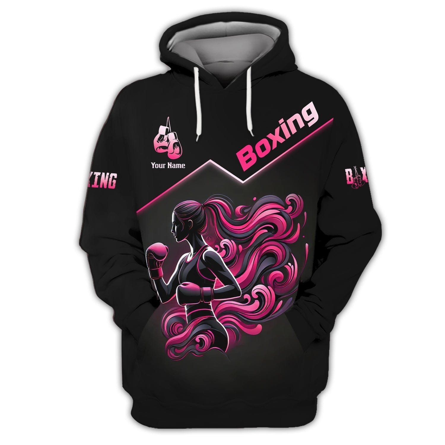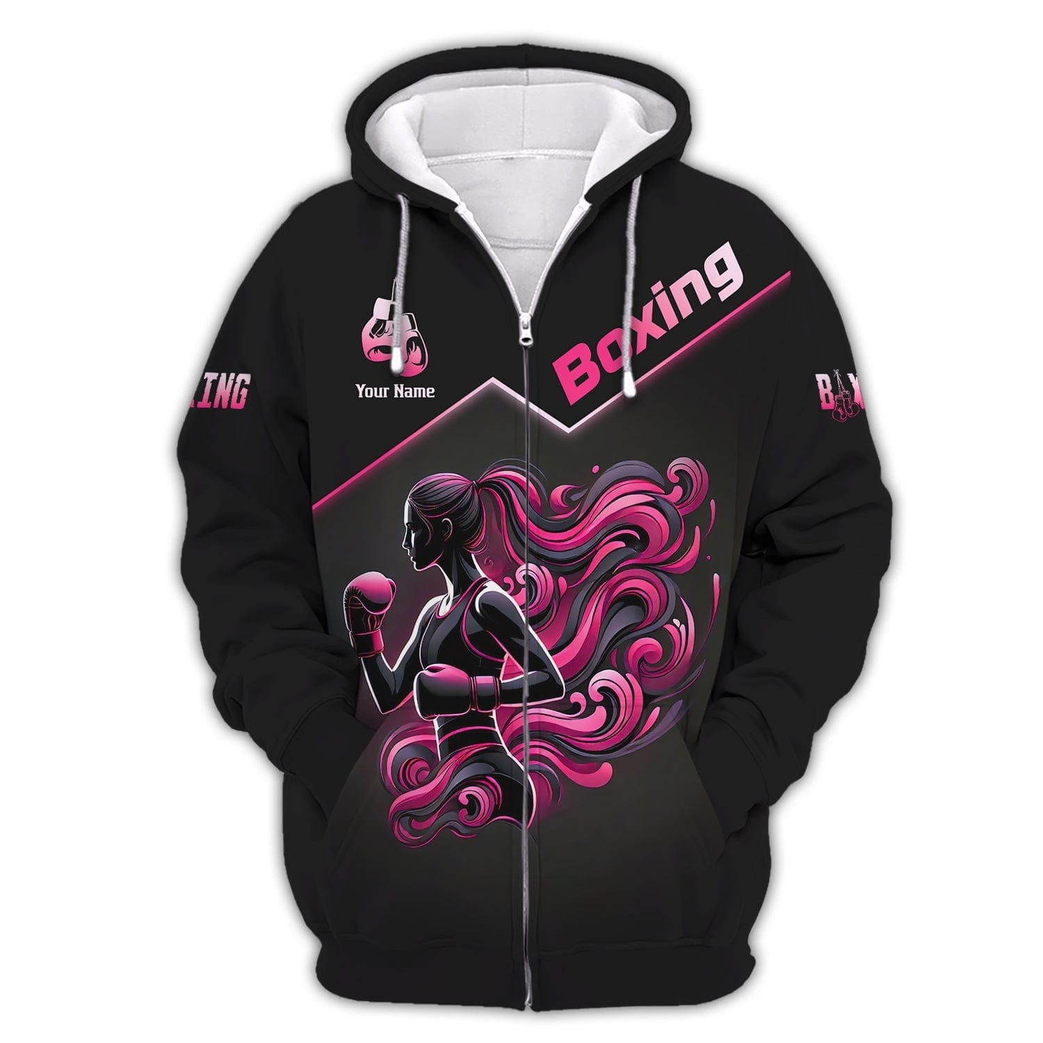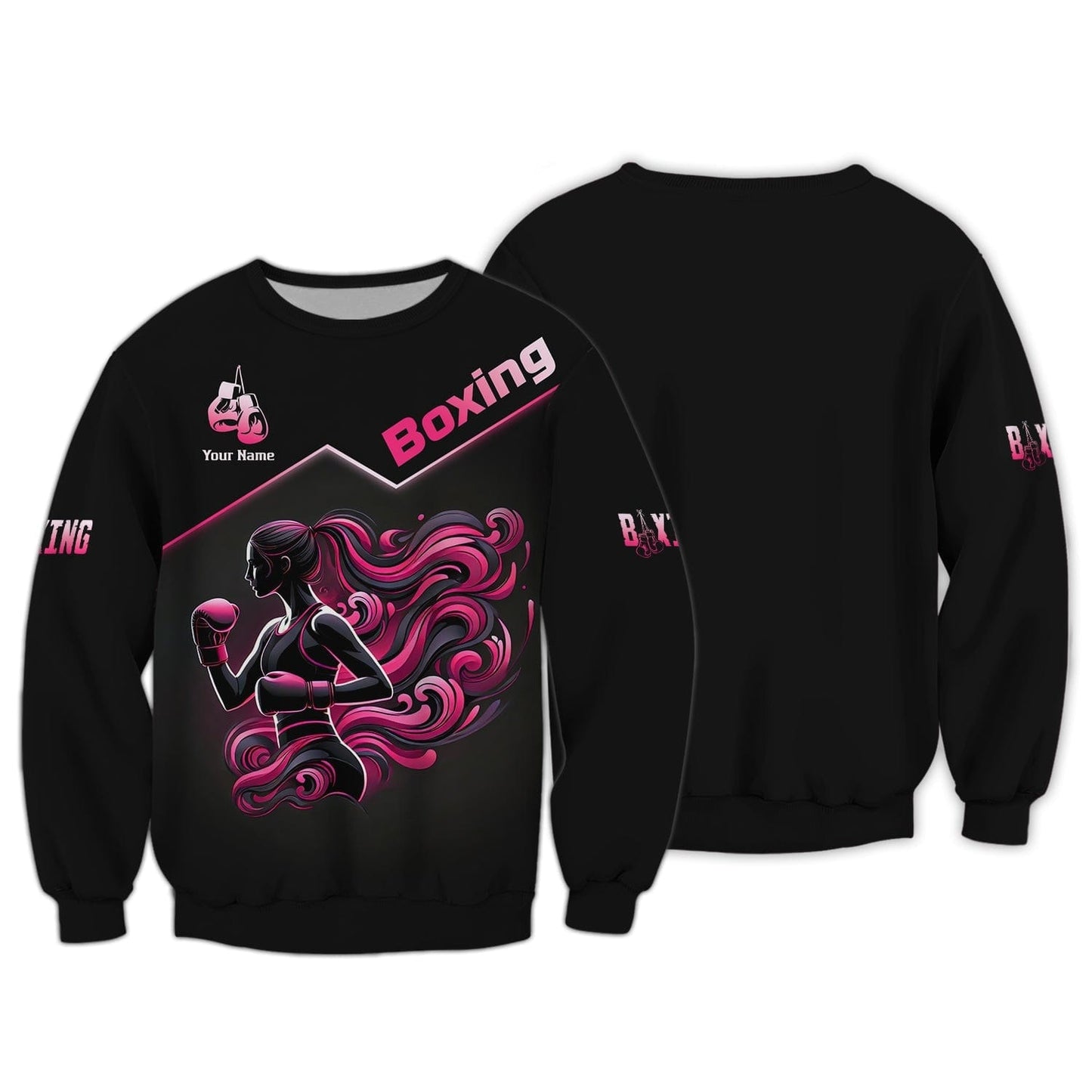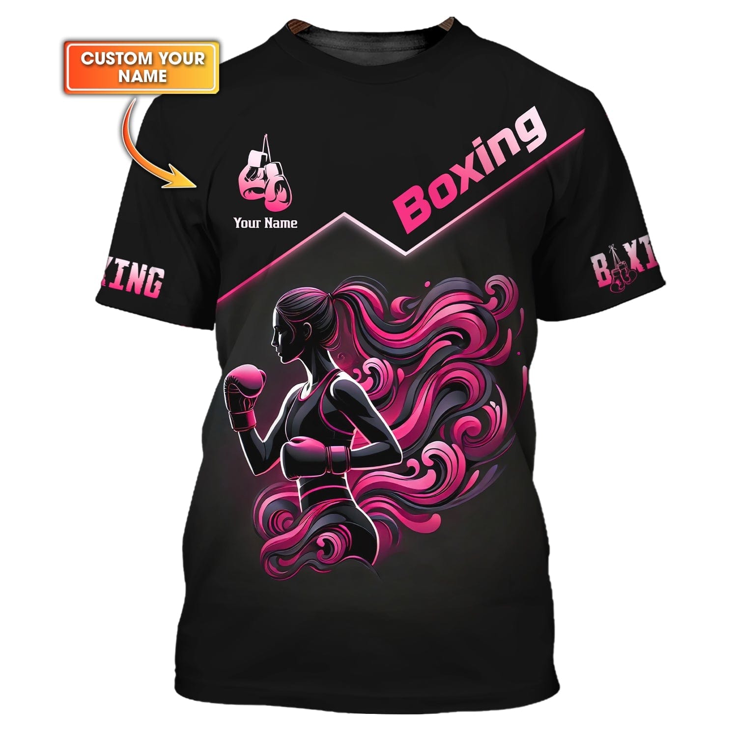 3D Full Print Boxing Girl Fight T-Shirts Personalized Name Gift For Boxing Lovers, All Over Printed