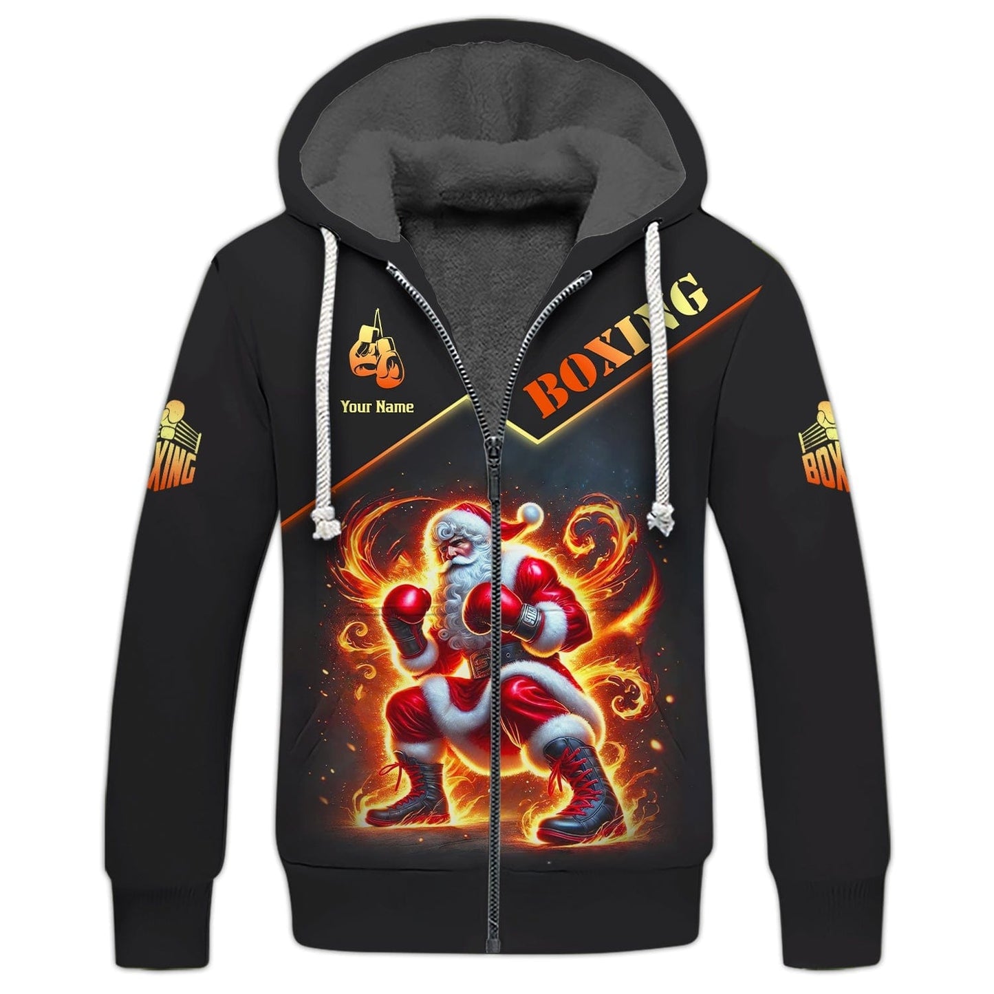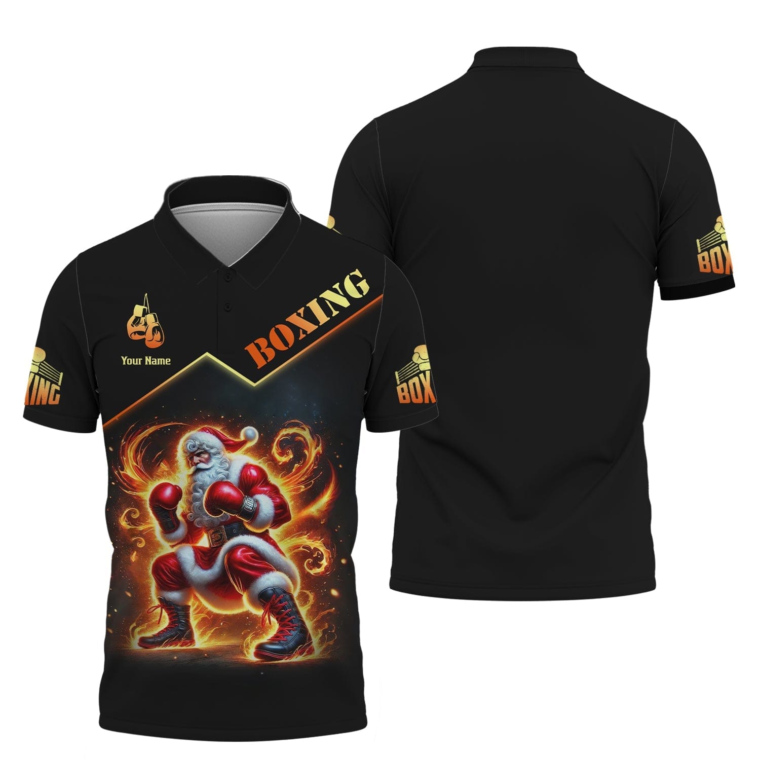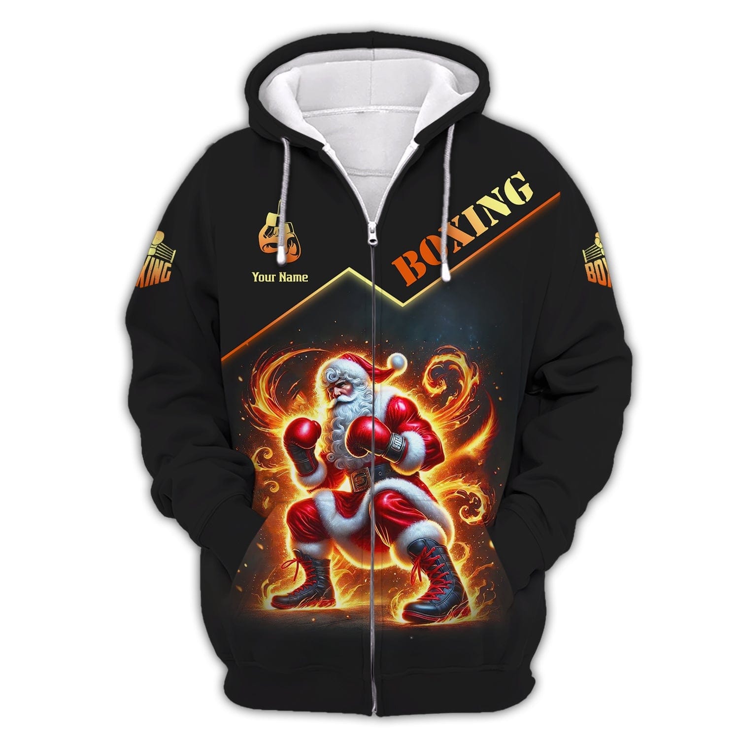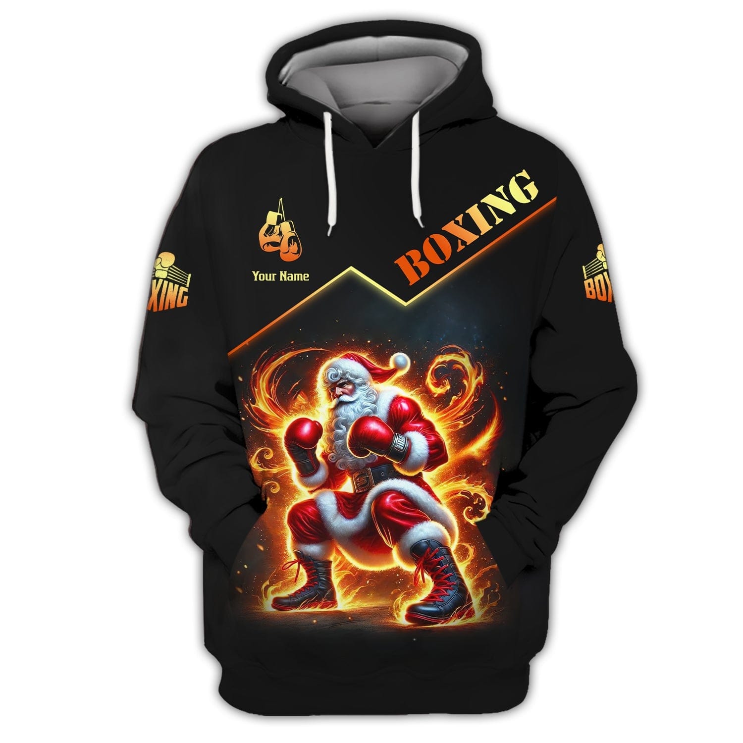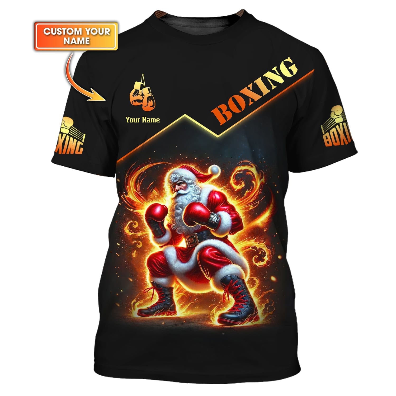 3D Full Print Boxing Santa T-Shirt - Fiery Christmas Fighter Personalized Name Gift For Boxing Lovers, All Over Printed
