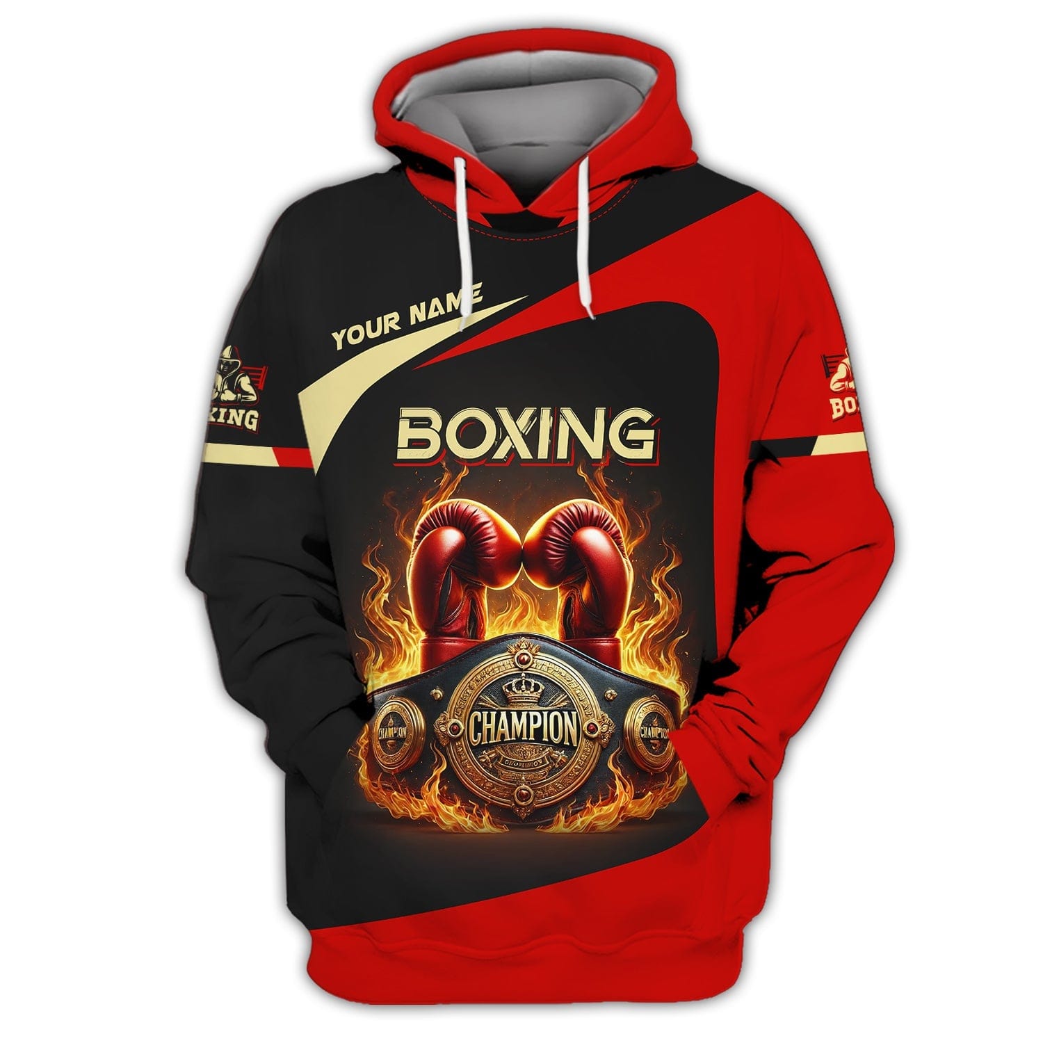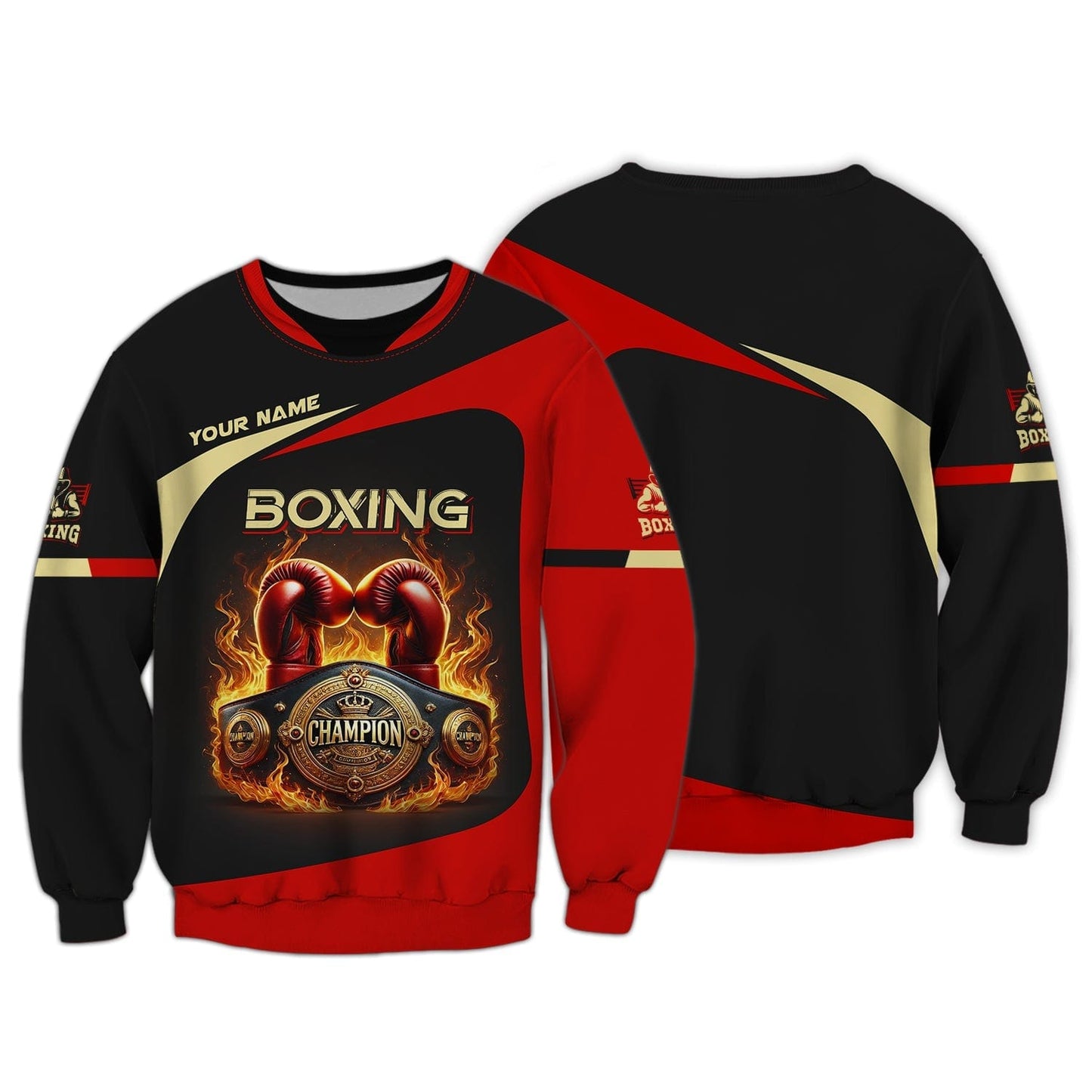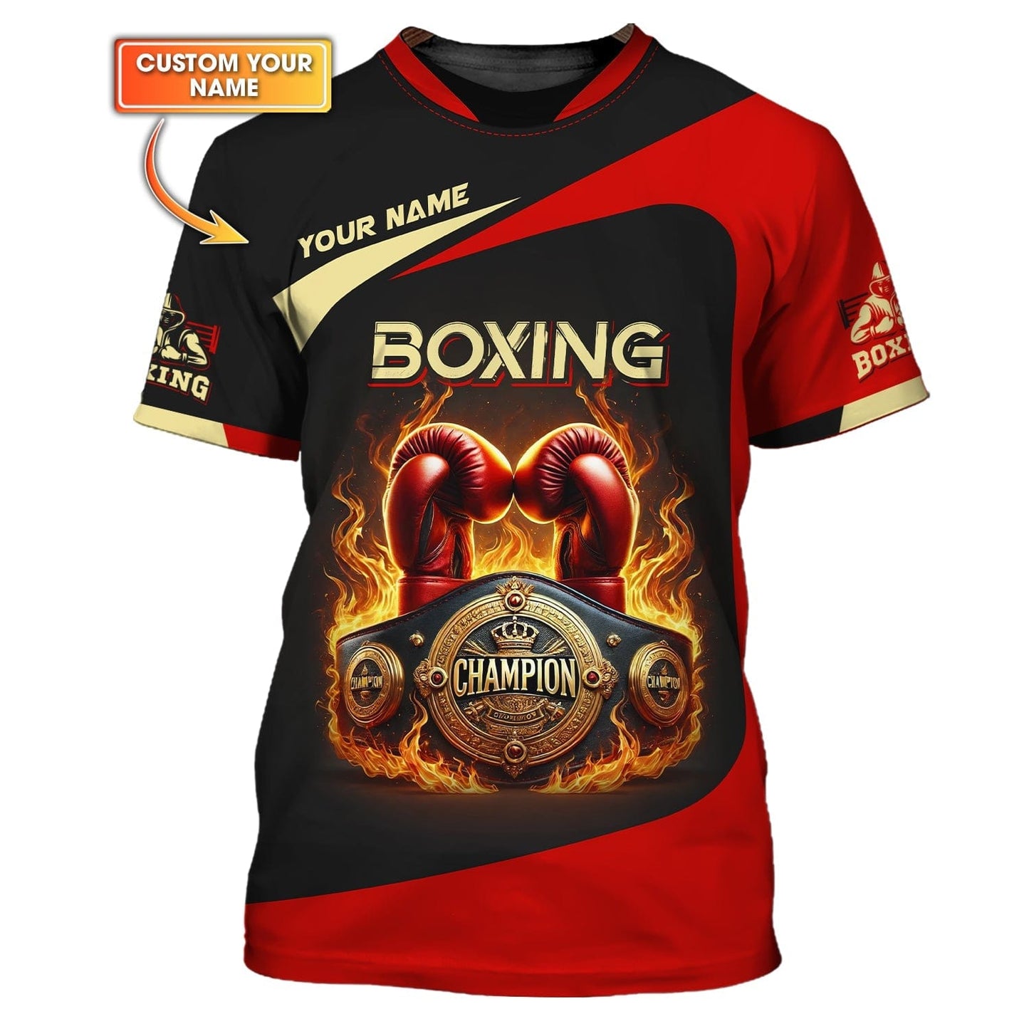 3D Full Print Boxing T-Shirt Fiery Gloves And Belt Personalized Name Gift For Boxing Lovers, All Over Printed