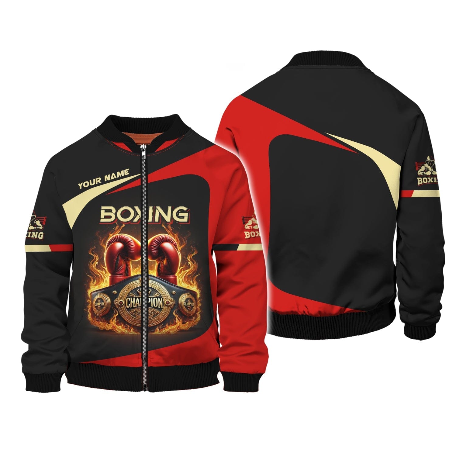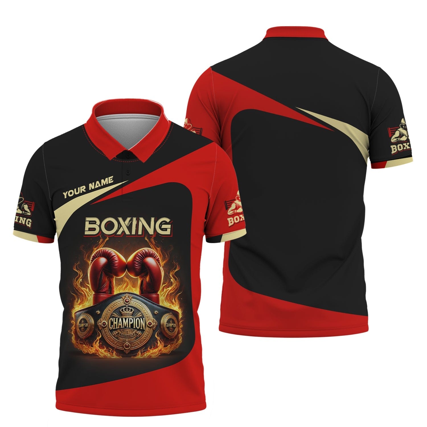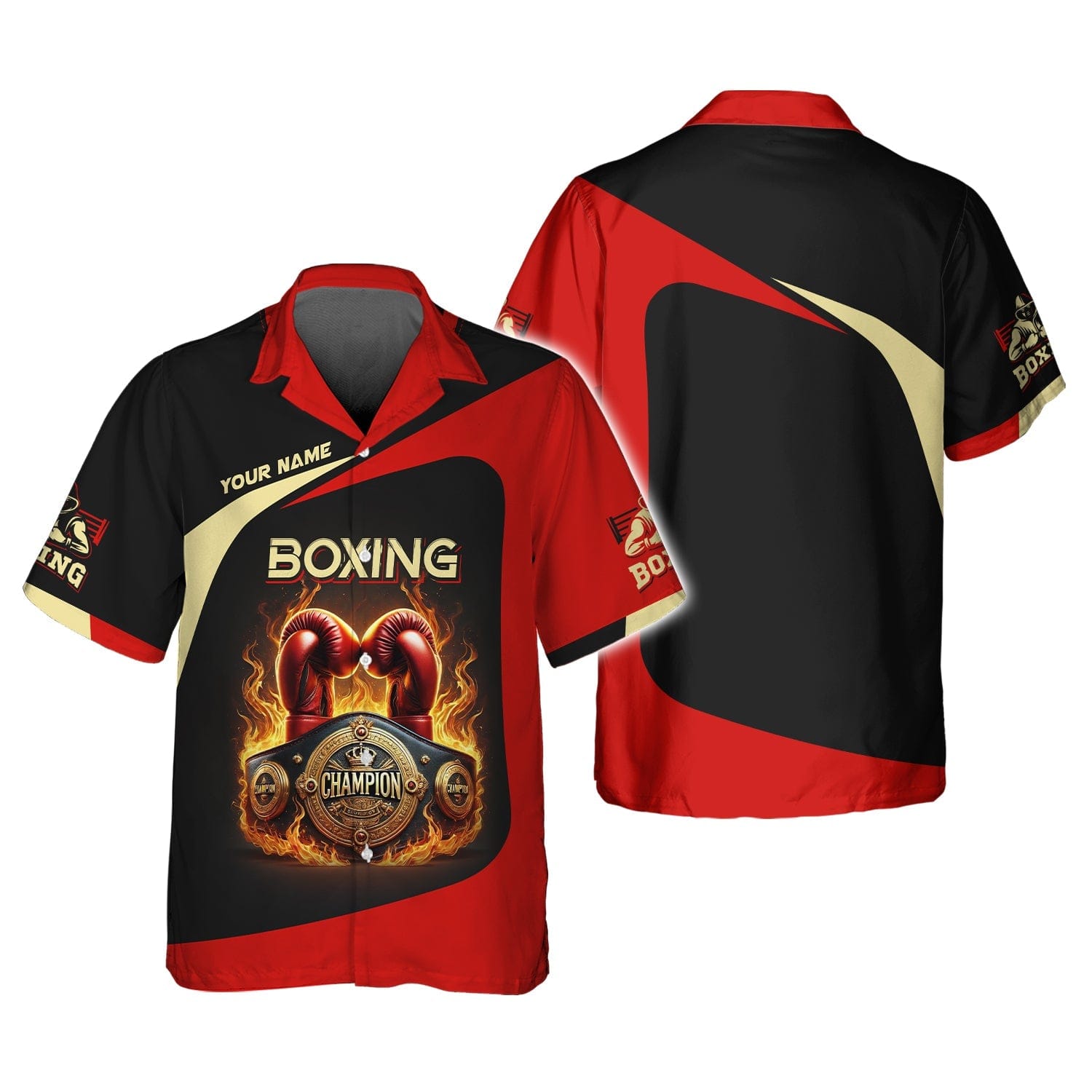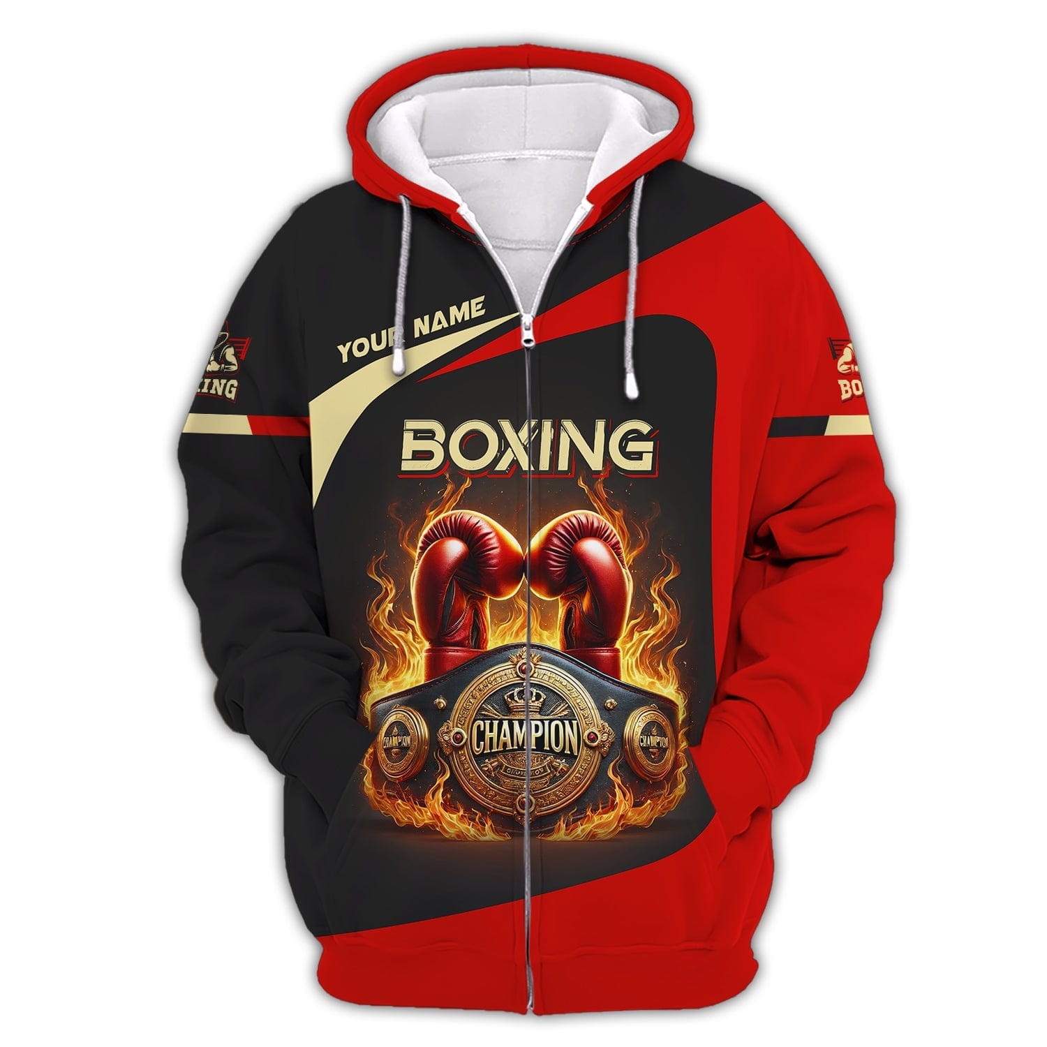 3D Full Print Boxing T-Shirt Fiery Gloves And Belt Personalized Name Gift For Boxing Lovers, All Over Printed