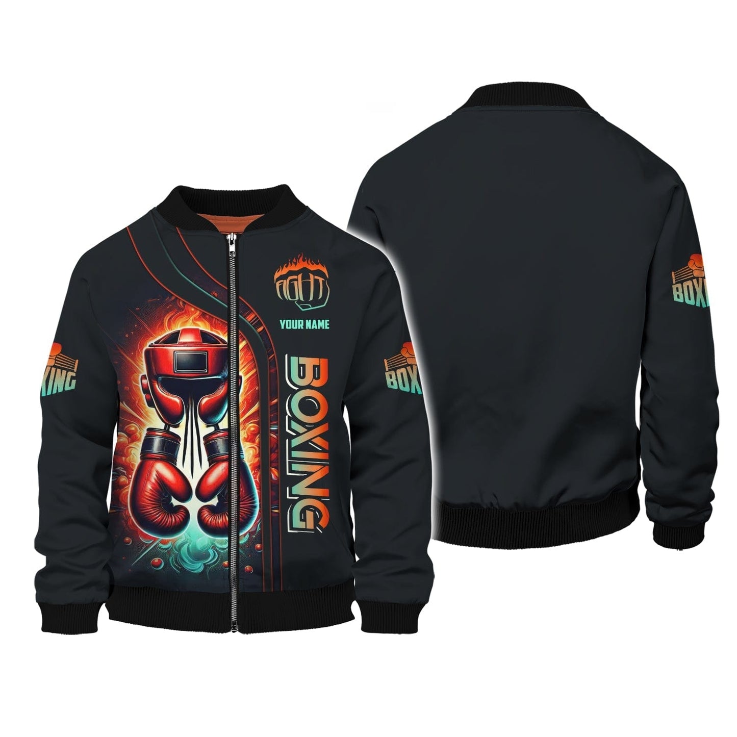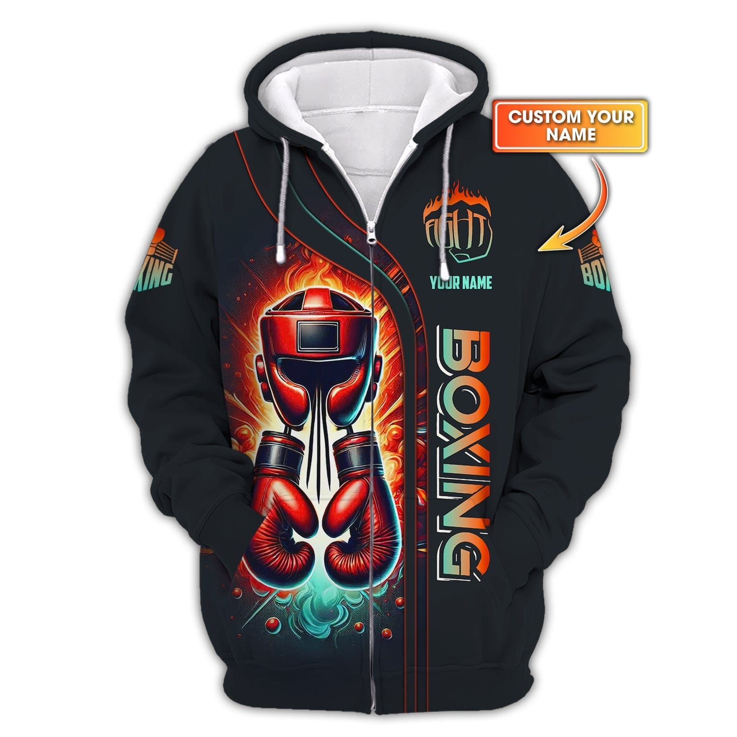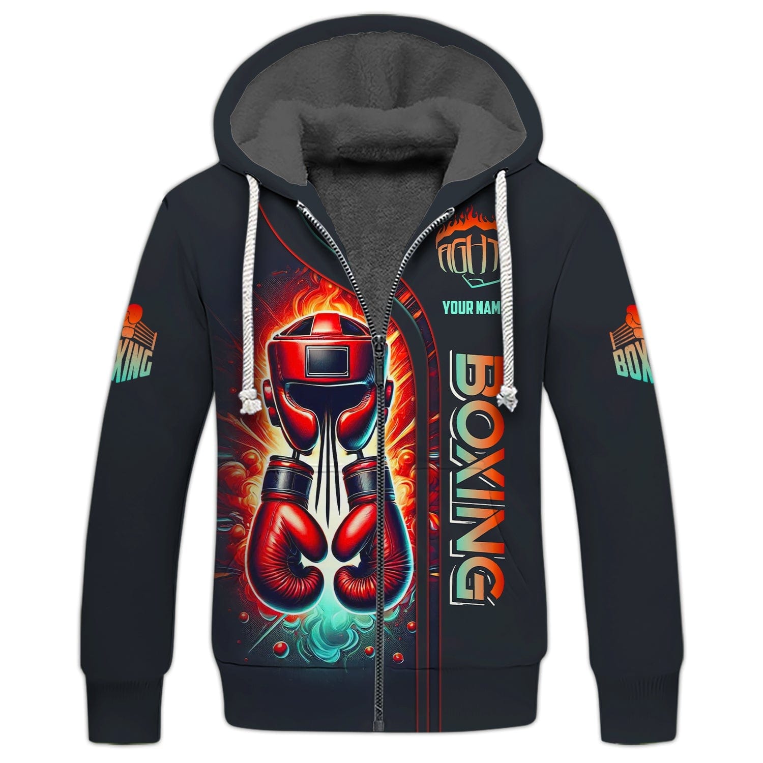 3D Full Print Helmet And Red Boxing Gloves Zipper Hoodie Personalized Name Gift For Boxer Lovers, All Over Printed