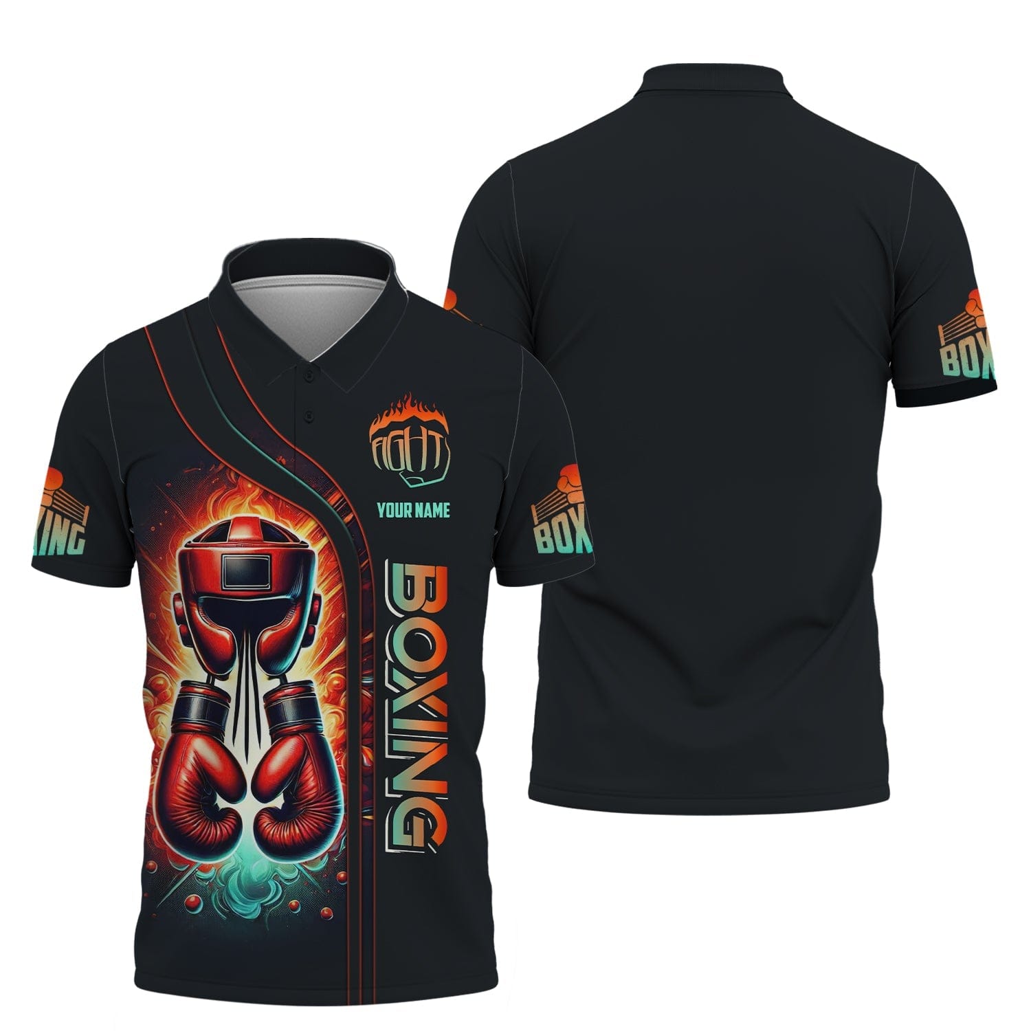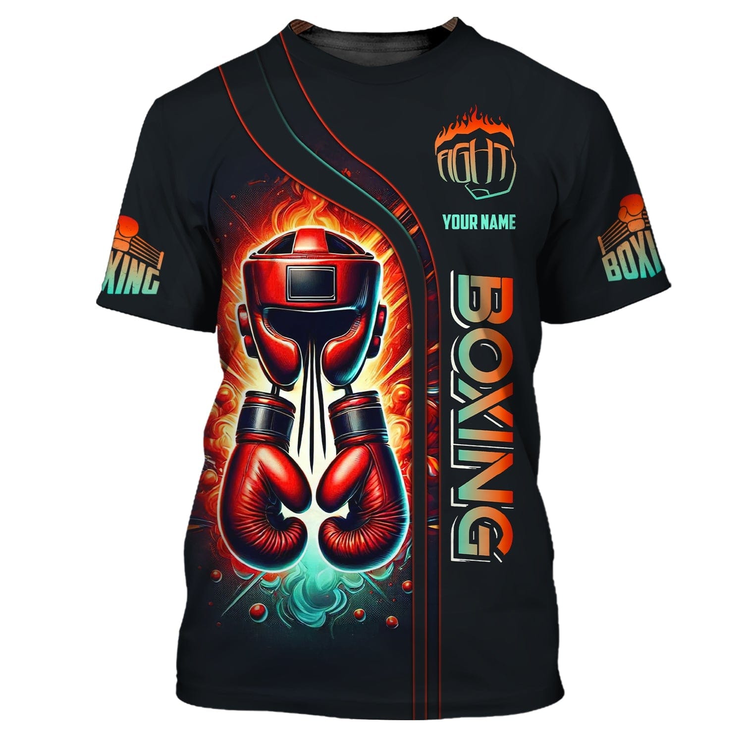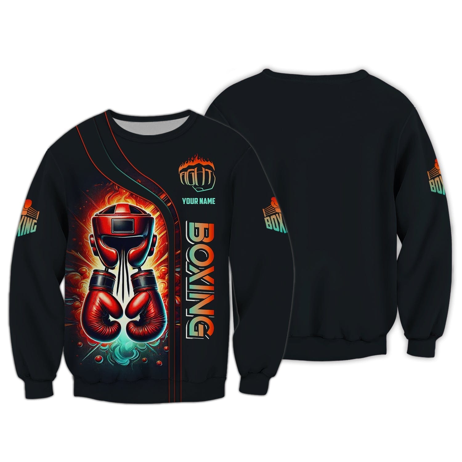 3D Full Print Helmet And Red Boxing Gloves Zipper Hoodie Personalized Name Gift For Boxer Lovers, All Over Printed