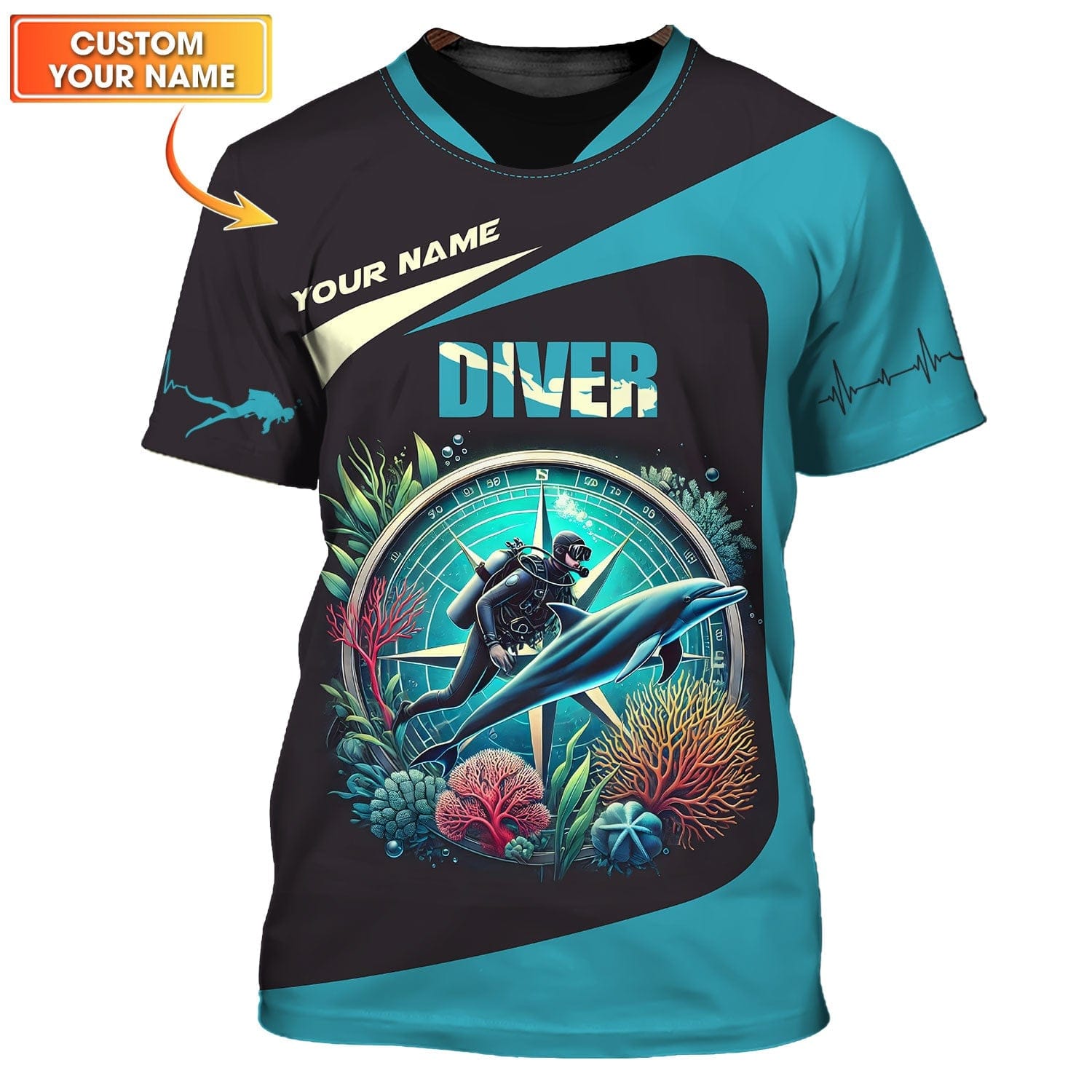 3D Full Print Scuba Diving T-Shirts Personalized Name Gift For Diver Lovers