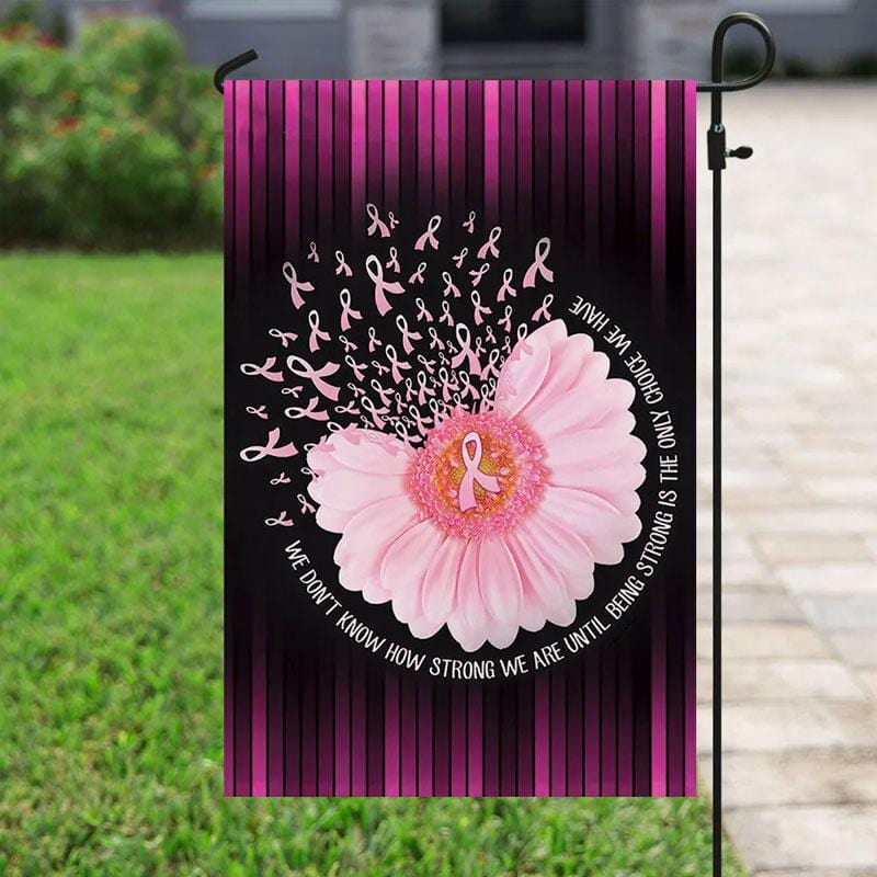 No sabemos lo fuertes que somos, girasol con lazo rosa, bandera de concientización sobre el cáncer de mama, bandera para el hogar y el jardín