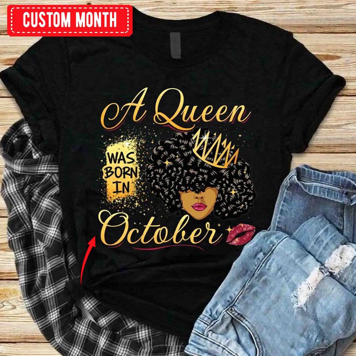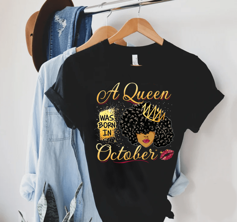 En octubre nació una reina, camisetas de cumpleaños personalizadas para mujeres afroamericanas