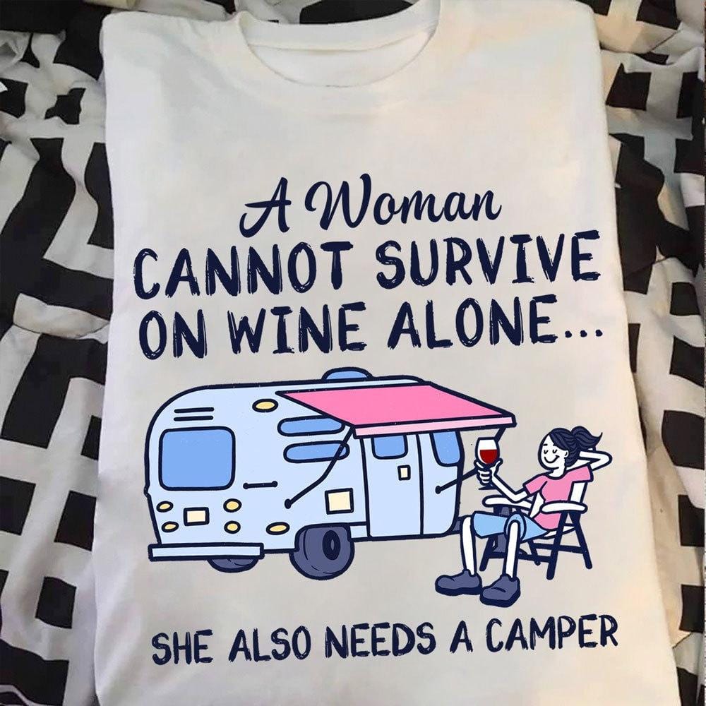 Una mujer no puede sobrevivir solo con vino, también necesita una autocaravana, camisetas de vino