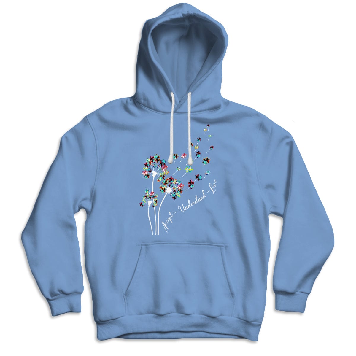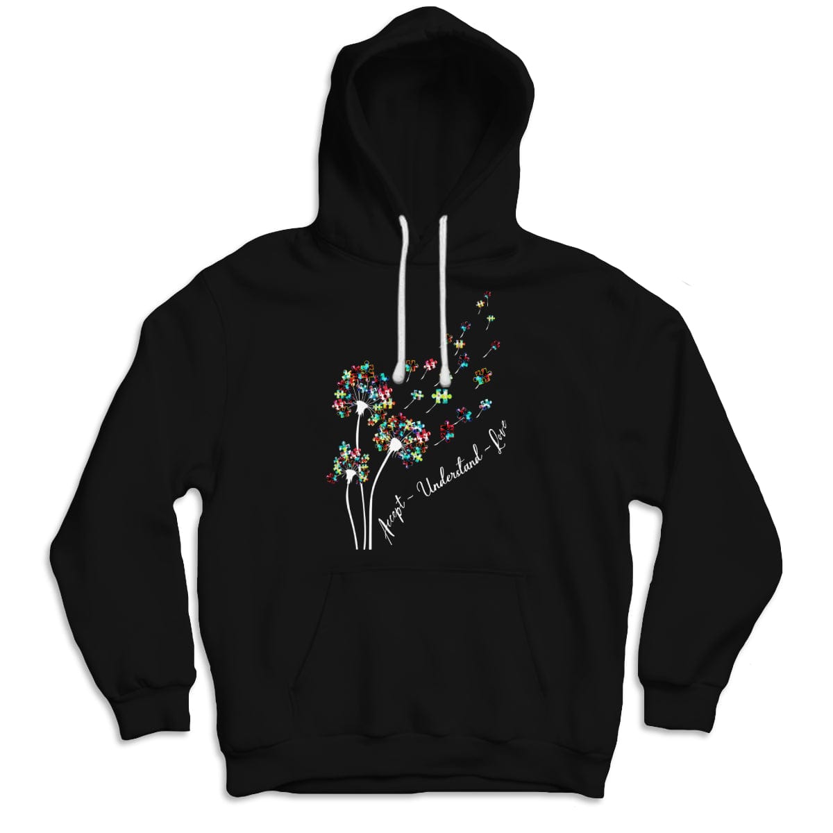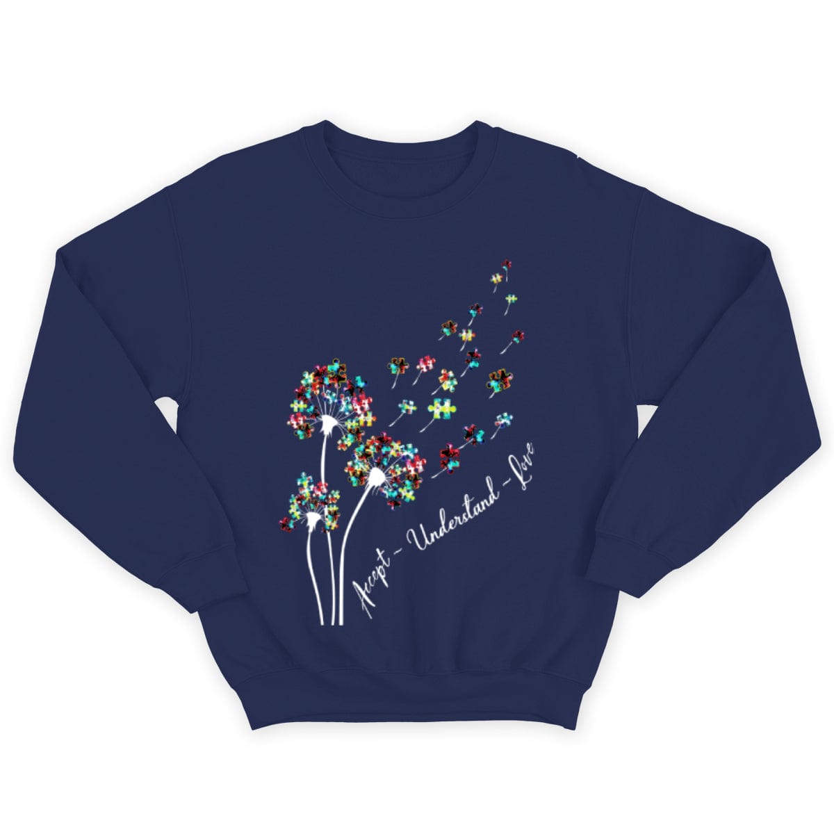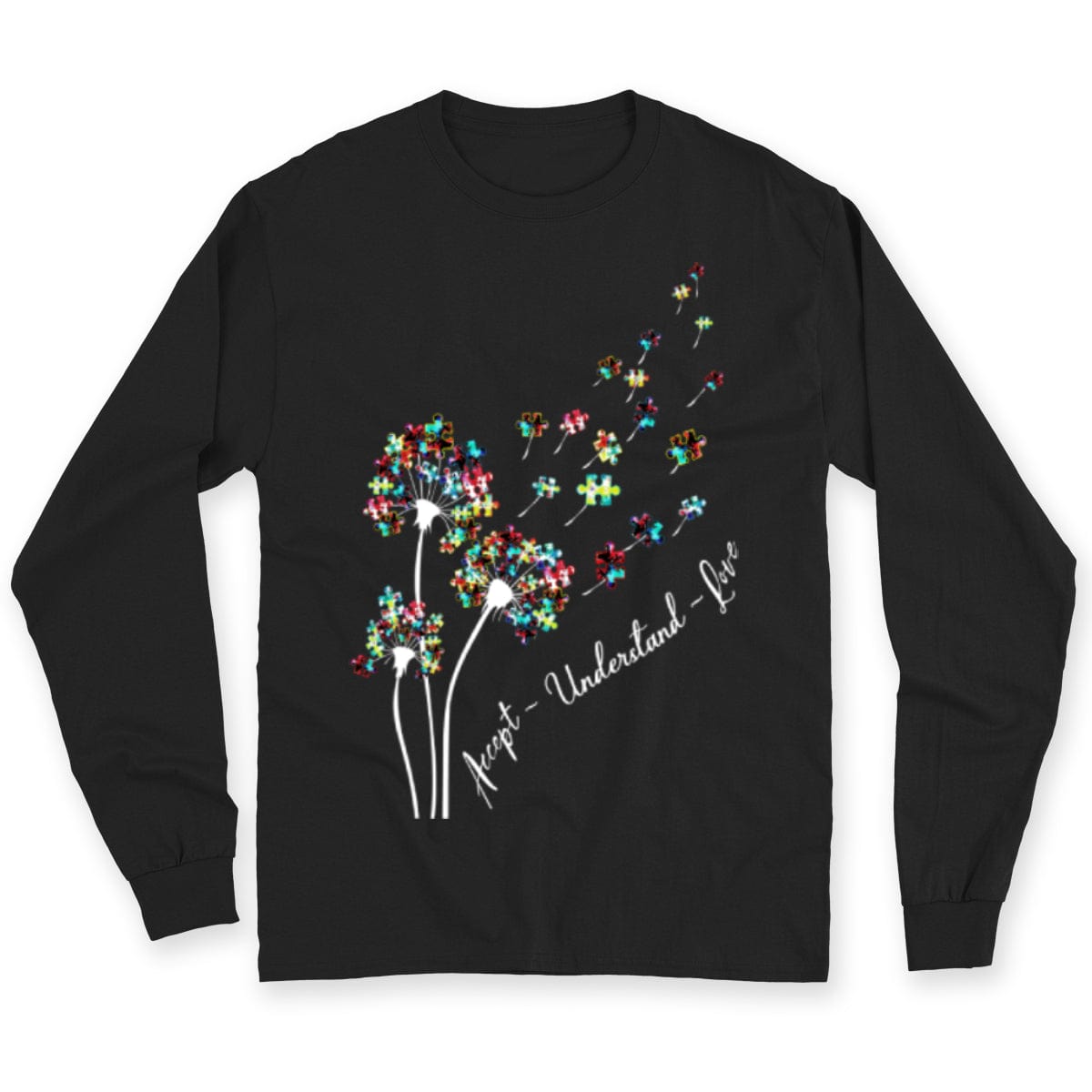 Camiseta de aceptación, comprensión, amor, pieza de rompecabezas, diente de león, conciencia de la aceptación del autismo