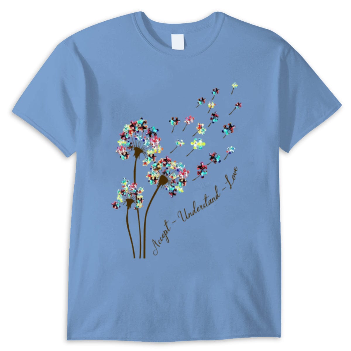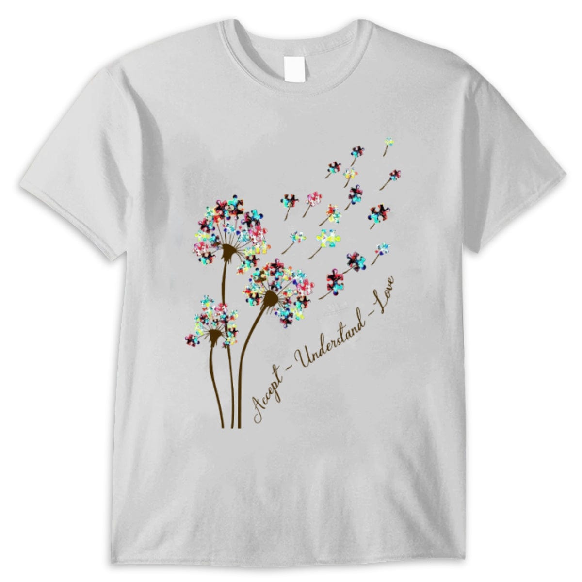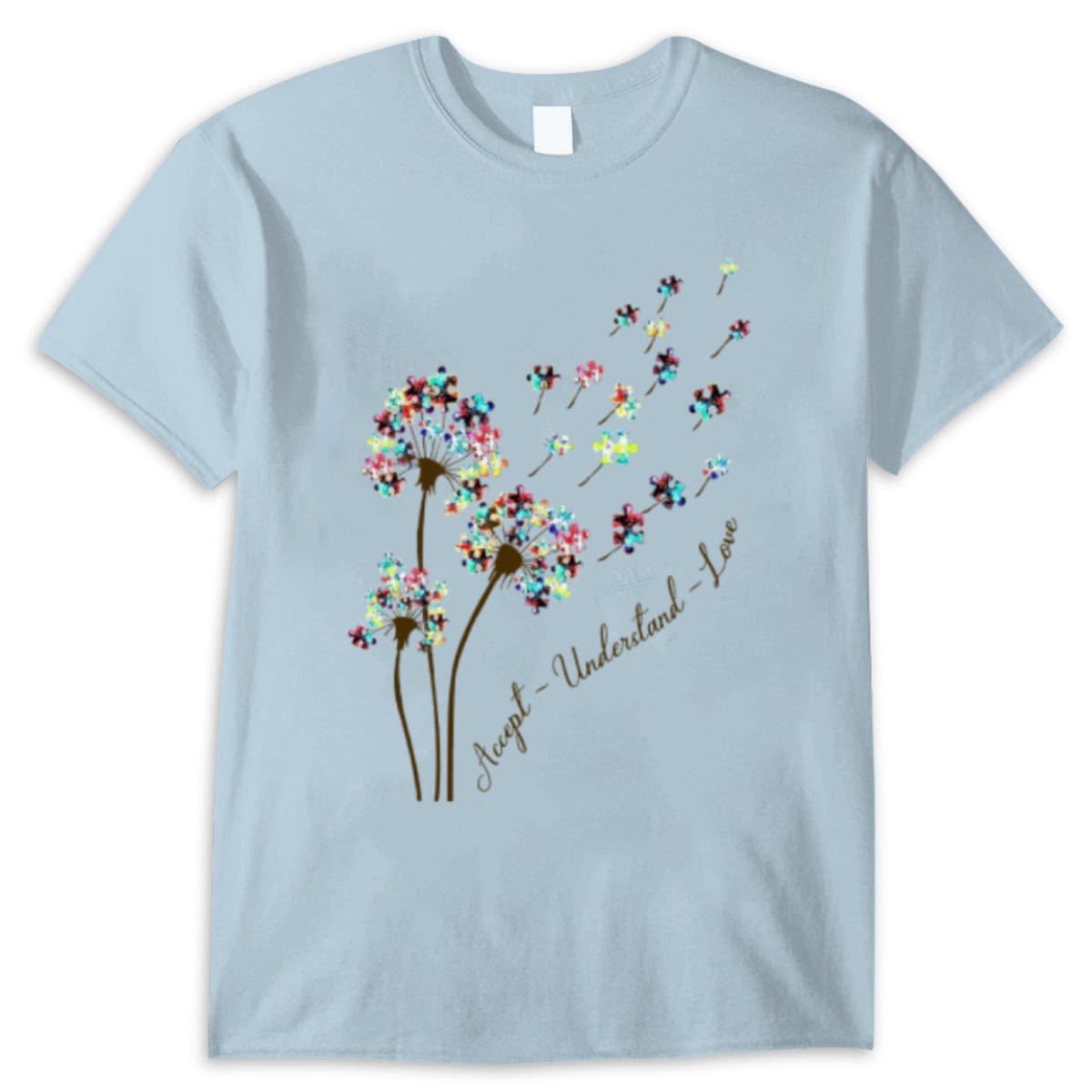 Camiseta de aceptación del autismo con pieza de rompecabezas de diente de león y aceptación del amor