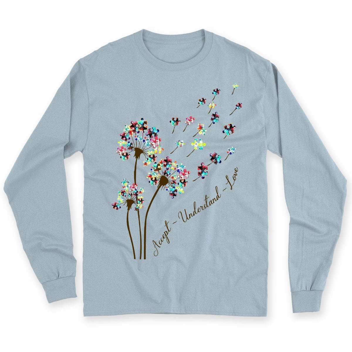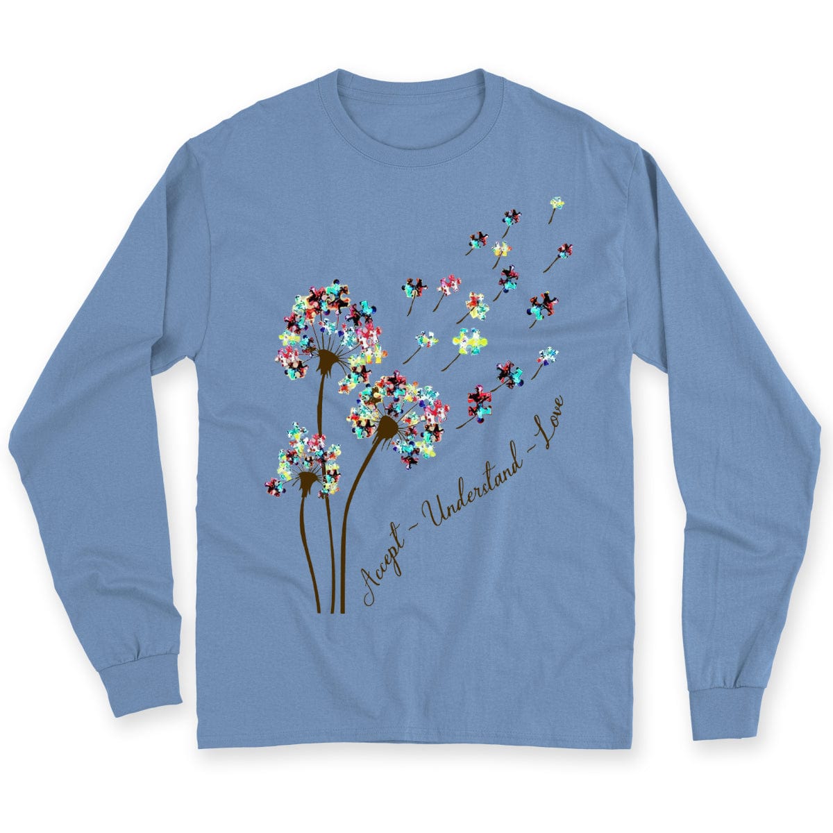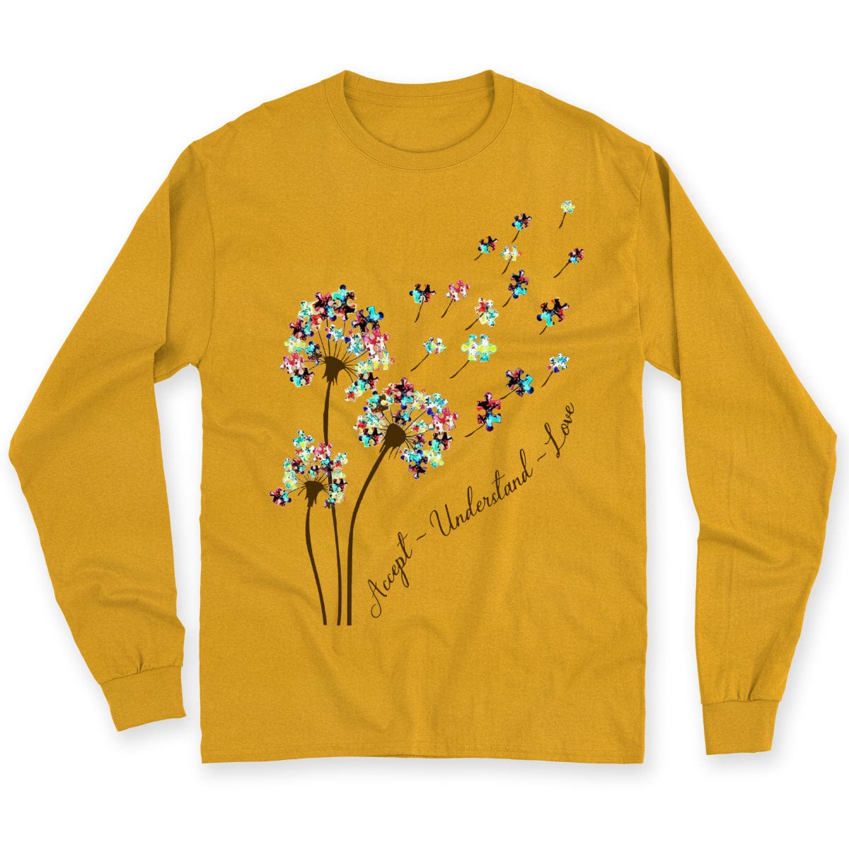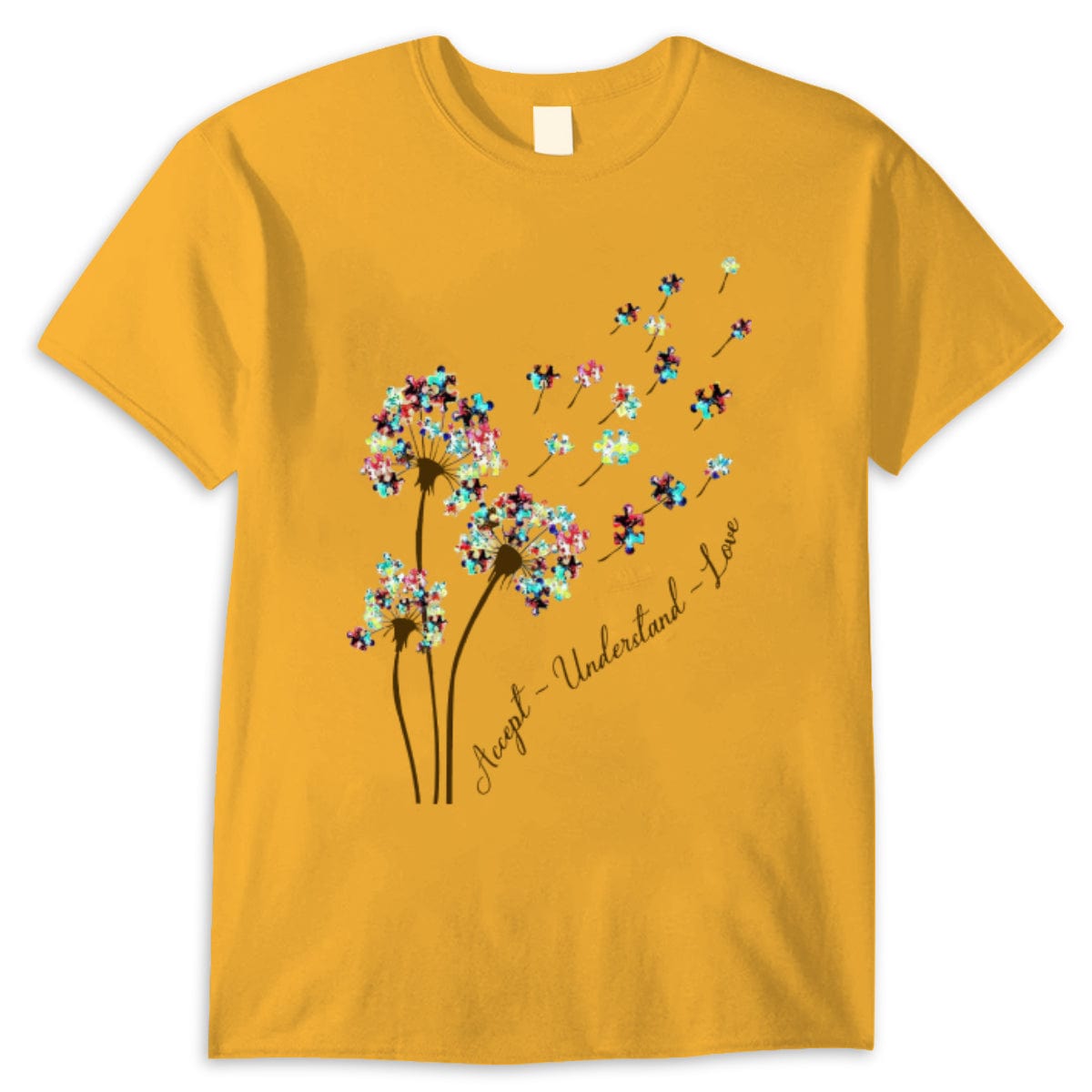 Camiseta de aceptación del autismo con pieza de rompecabezas de diente de león y aceptación del amor