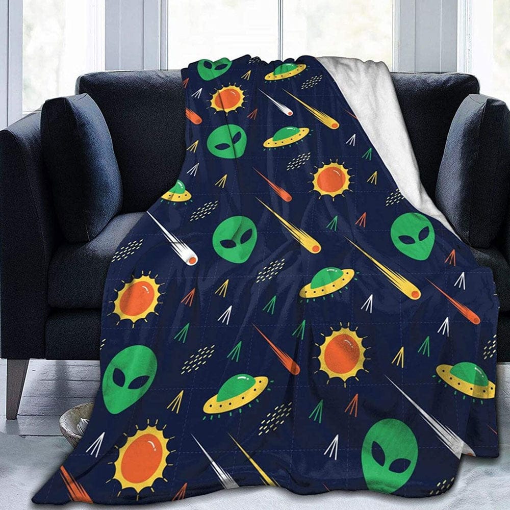 Manta de vellón y sherpa con estampado de extraterrestres y ovnis