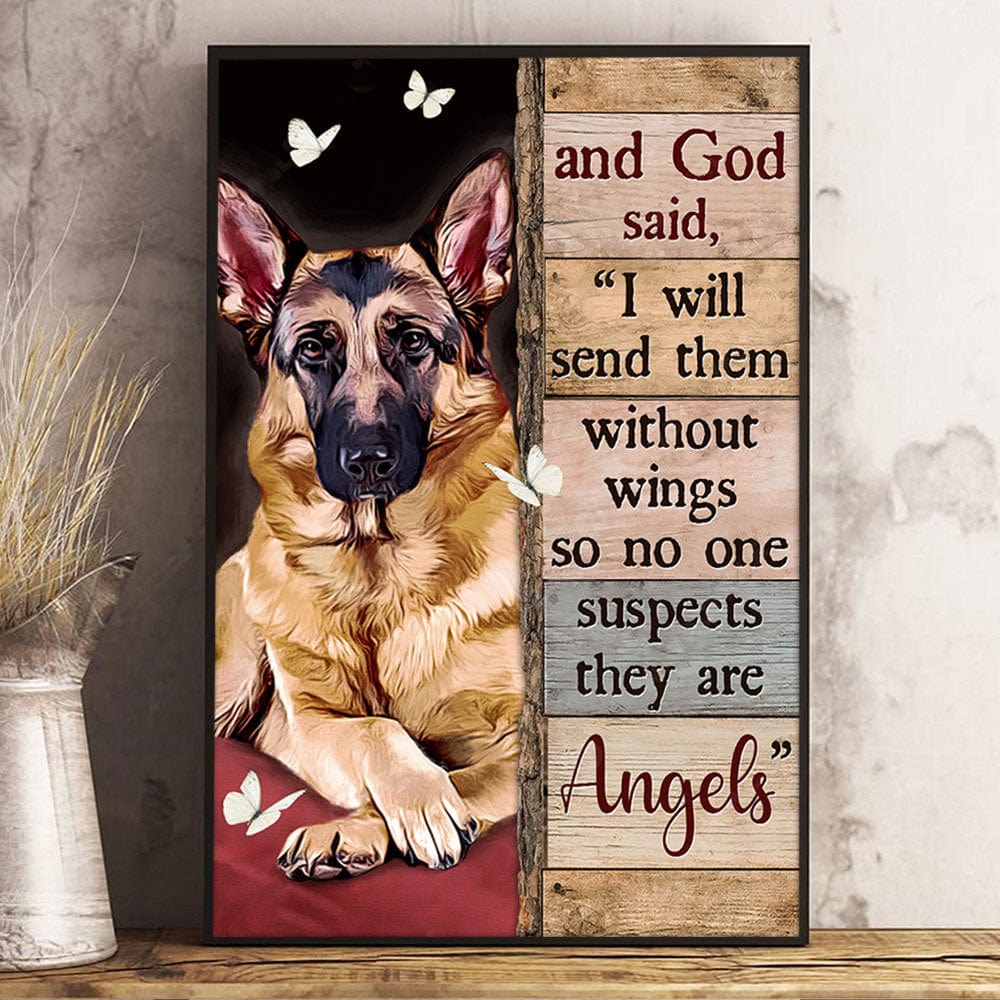 Y Dios dijo: Los enviaré sin alas Póster conmemorativo de pastor alemán, lienzo