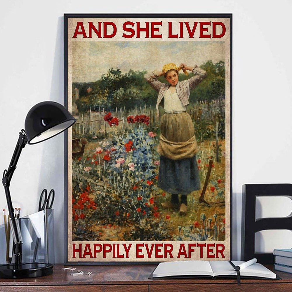Póster de jardinería Y ella vivió feliz para siempre, lienzo