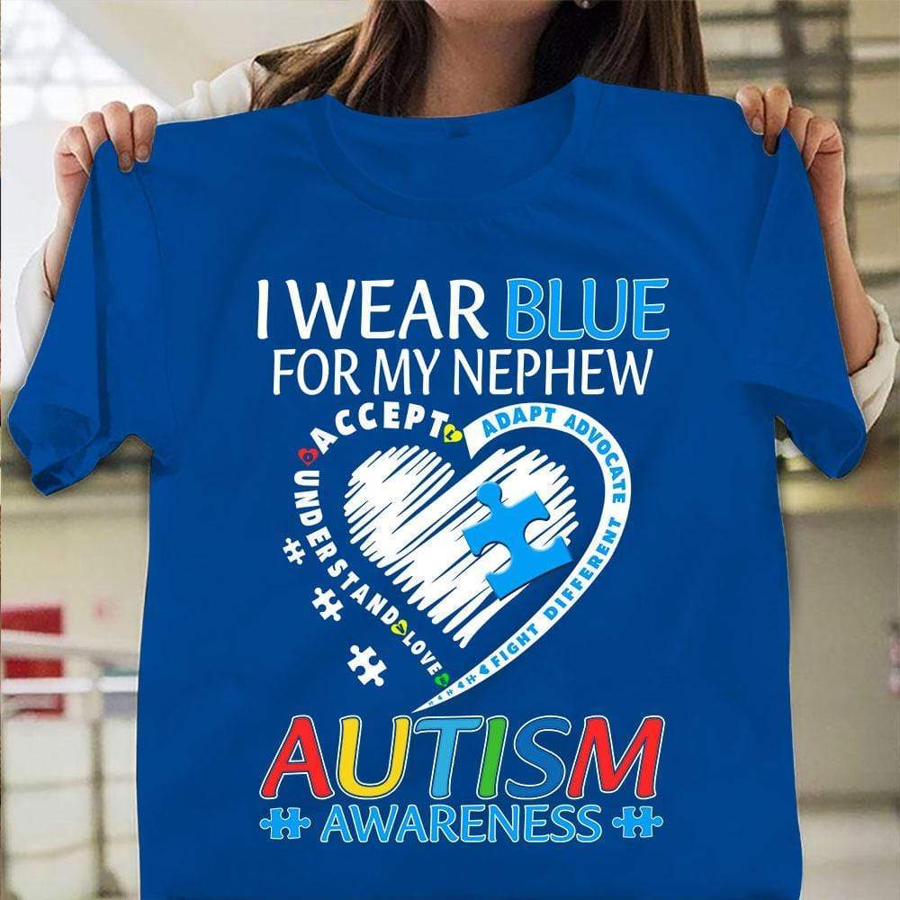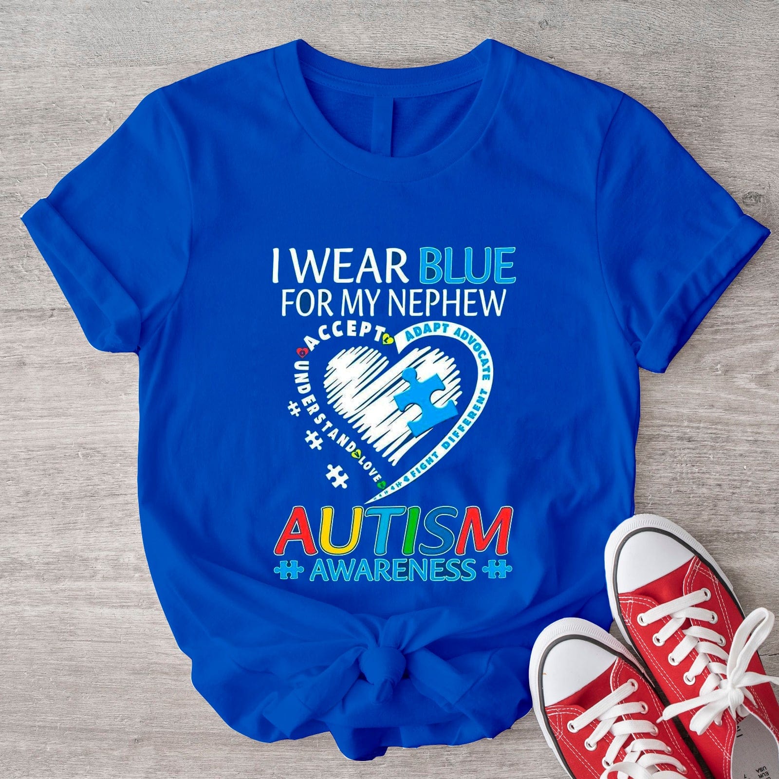 Camiseta de aceptación del autismo, "Me pongo azul por mi sobrino", camiseta de concienciación sobre el autismo