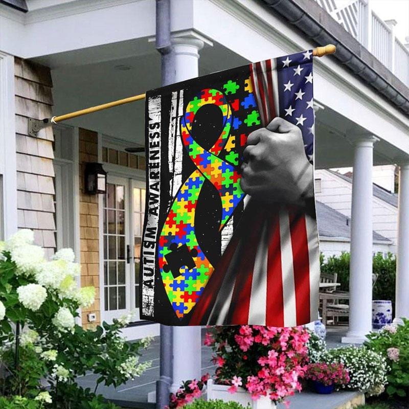 Bandera para casa y jardín de Estados Unidos para concienciar sobre el autismo, cinta con forma de pieza de rompecabezas