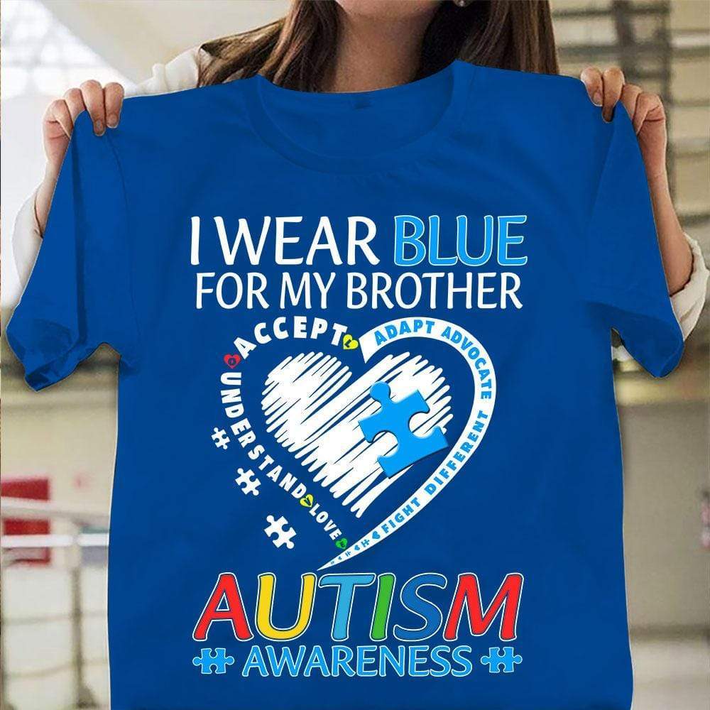 Camiseta de concienciación sobre el autismo para niños, "Llevo azul por mi hermano", pieza de rompecabezas en forma de corazón