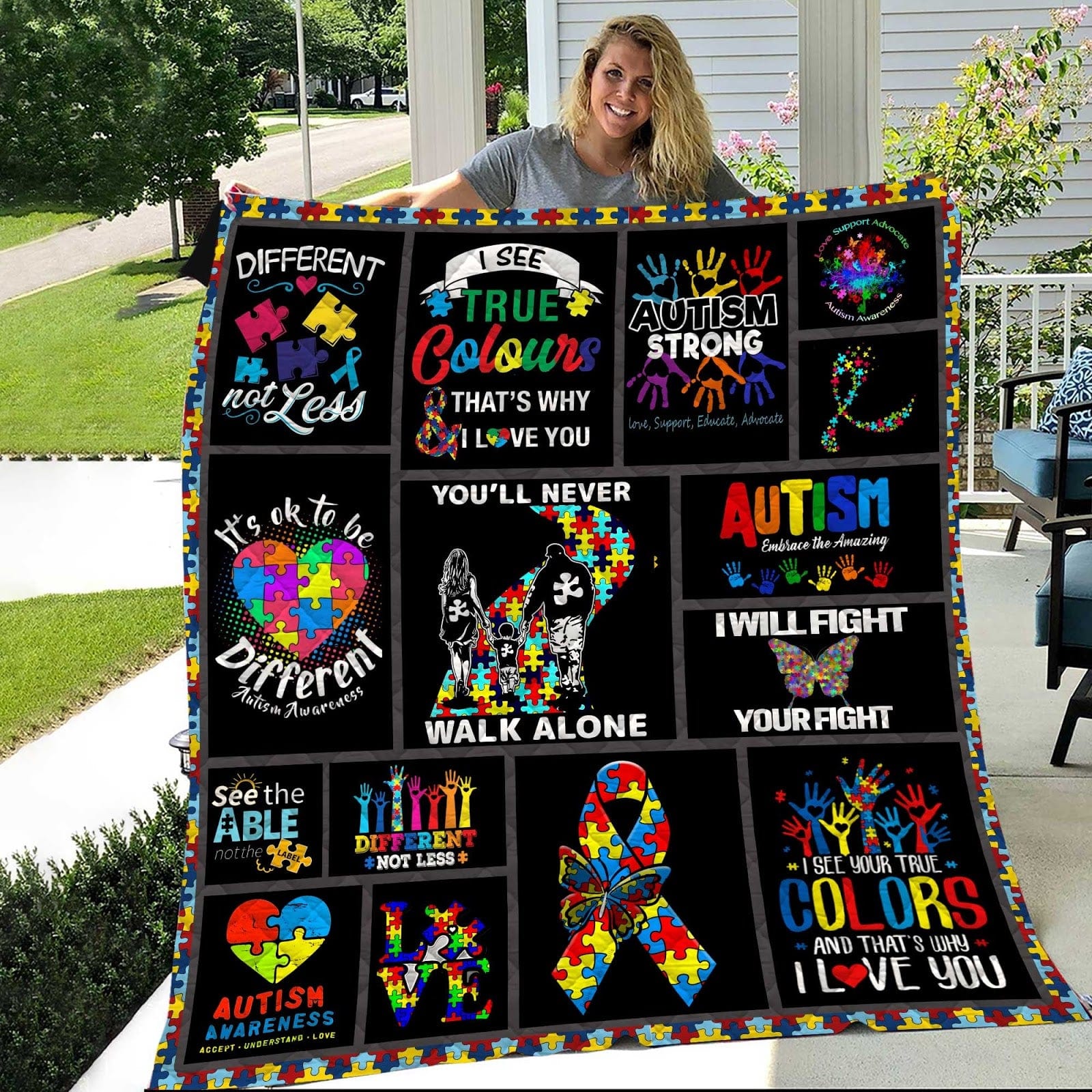 Manta de polar y sherpa con el lema "Nunca caminarás solo" para concienciar sobre el autismo