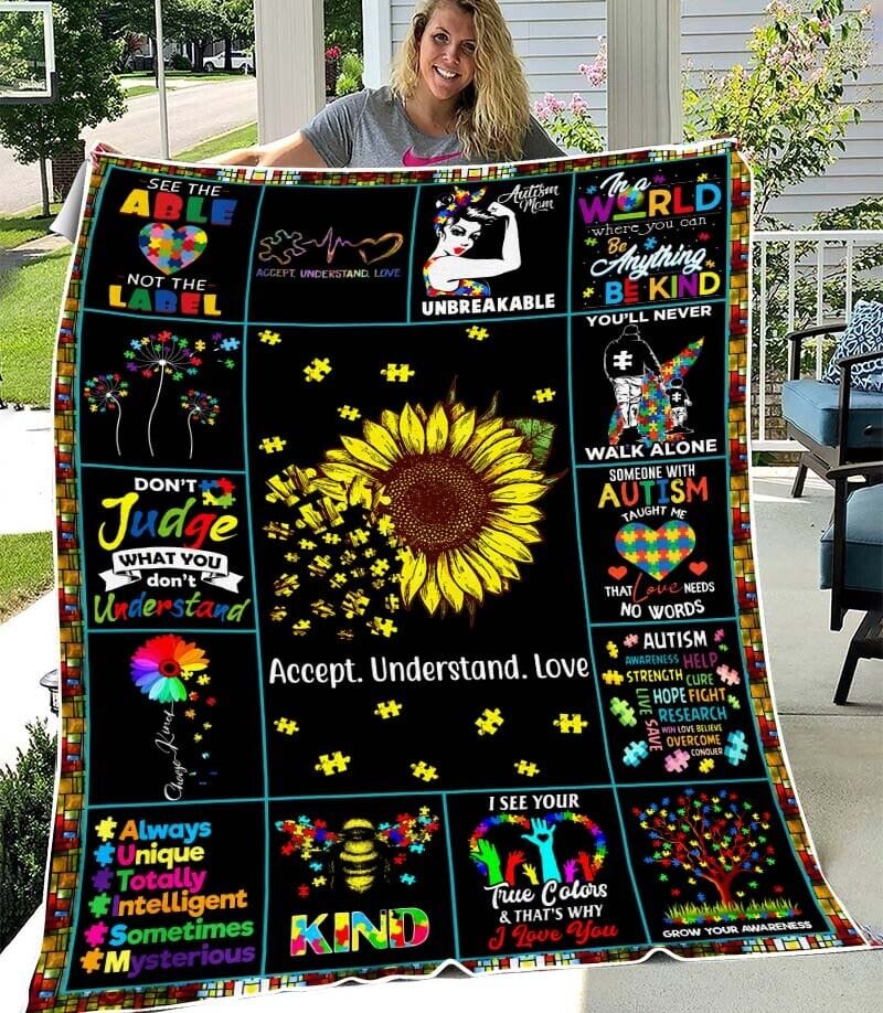Manta polar y sherpa con diseño de girasol para concienciar sobre el autismo