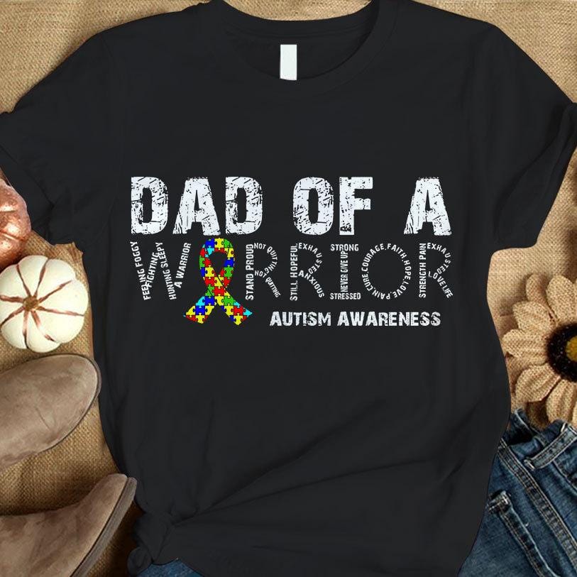 Camiseta de papá autista, papá de un guerrero, cinta con piezas de rompecabezas, camiseta de concienciación sobre el autismo