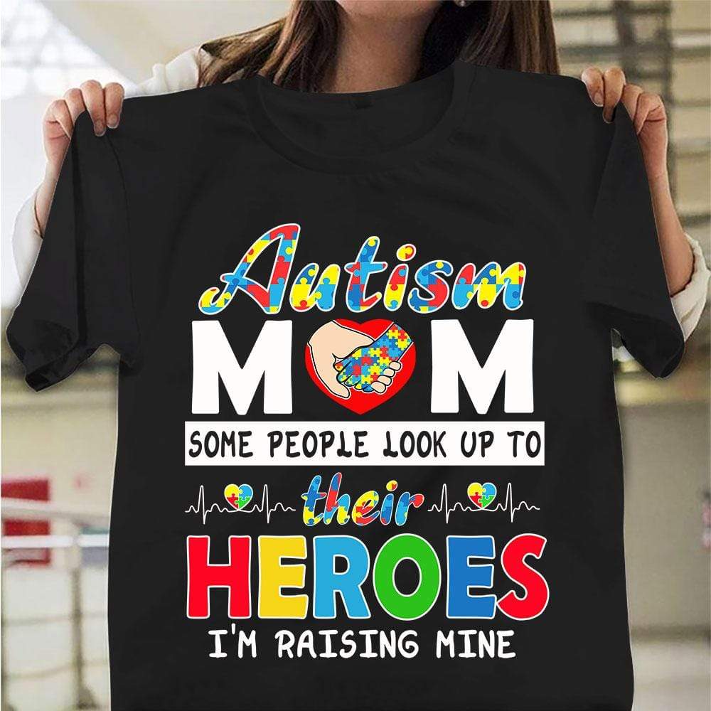 Camiseta de mamá autista, algunas personas admiran a sus héroes, pieza de rompecabezas en forma de mano y corazón