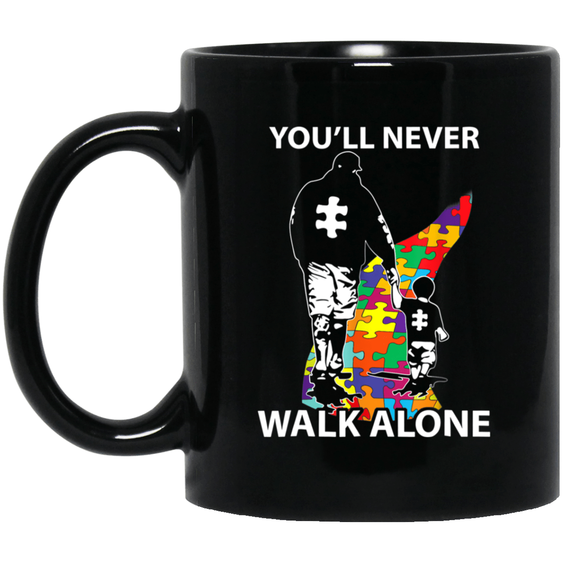 Papá autista: nunca caminarás solo, taza de concienciación sobre el autismo para padre e hijo