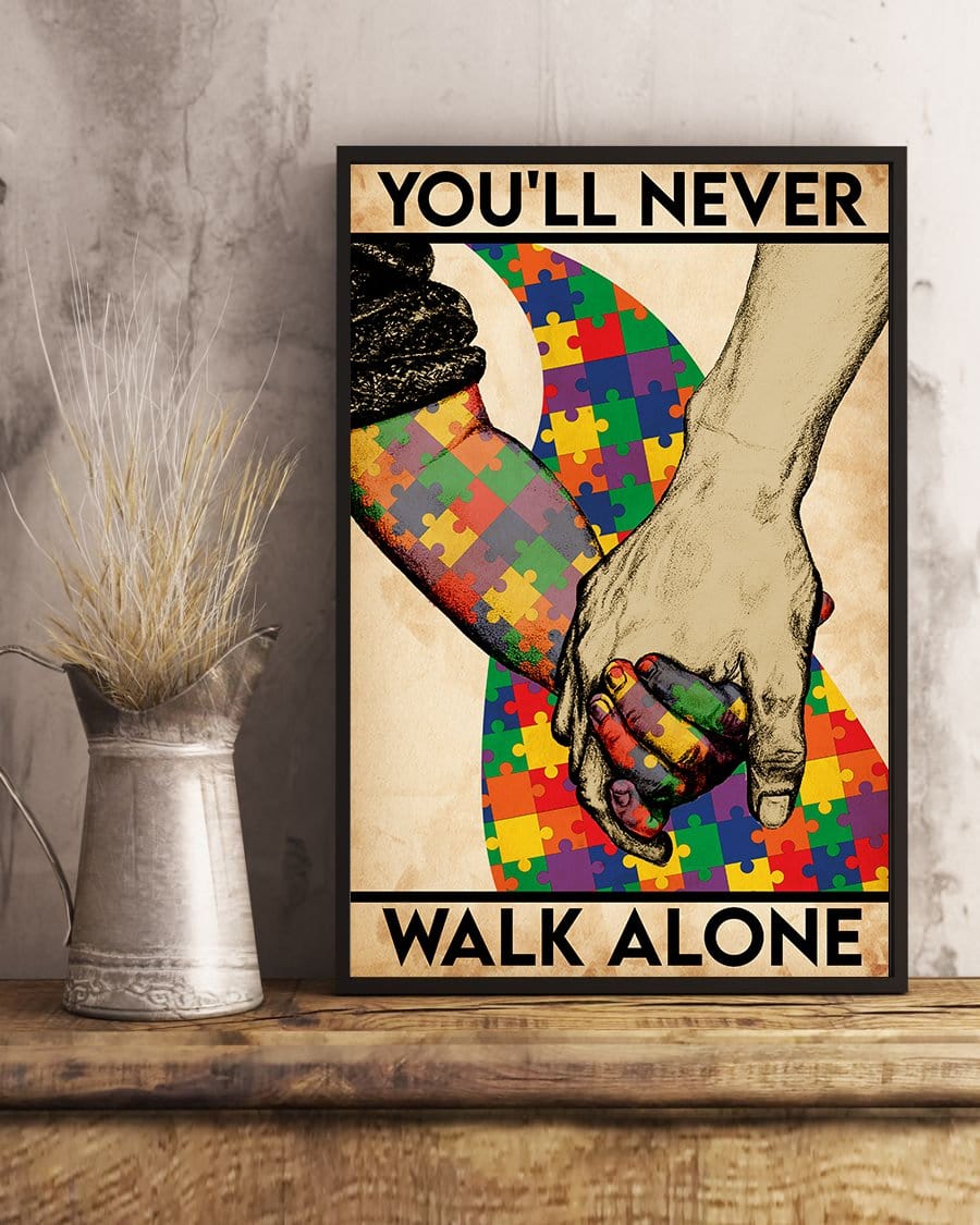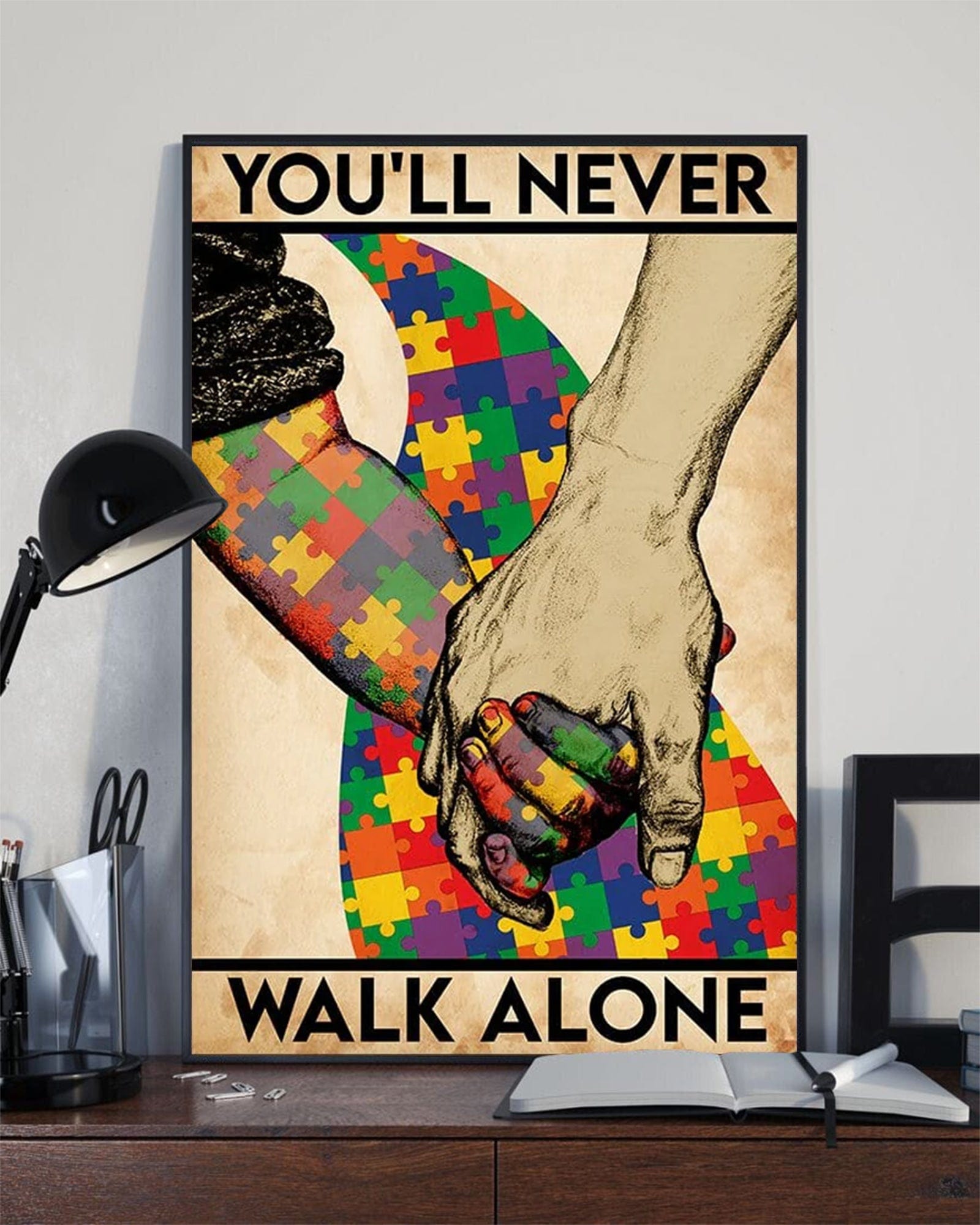 Póster de concienciación sobre el autismo "Nunca caminarás solo" en lienzo