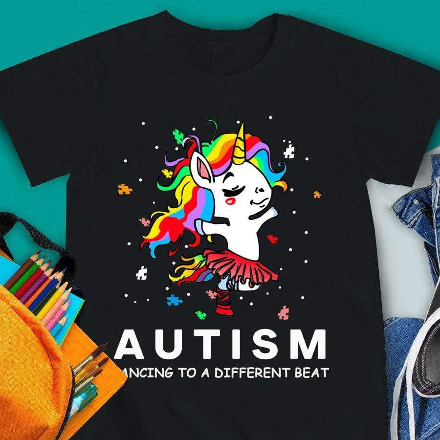 Camisetas de autismo para niños, unicornio bailando a diferentes ritmos, divertidas