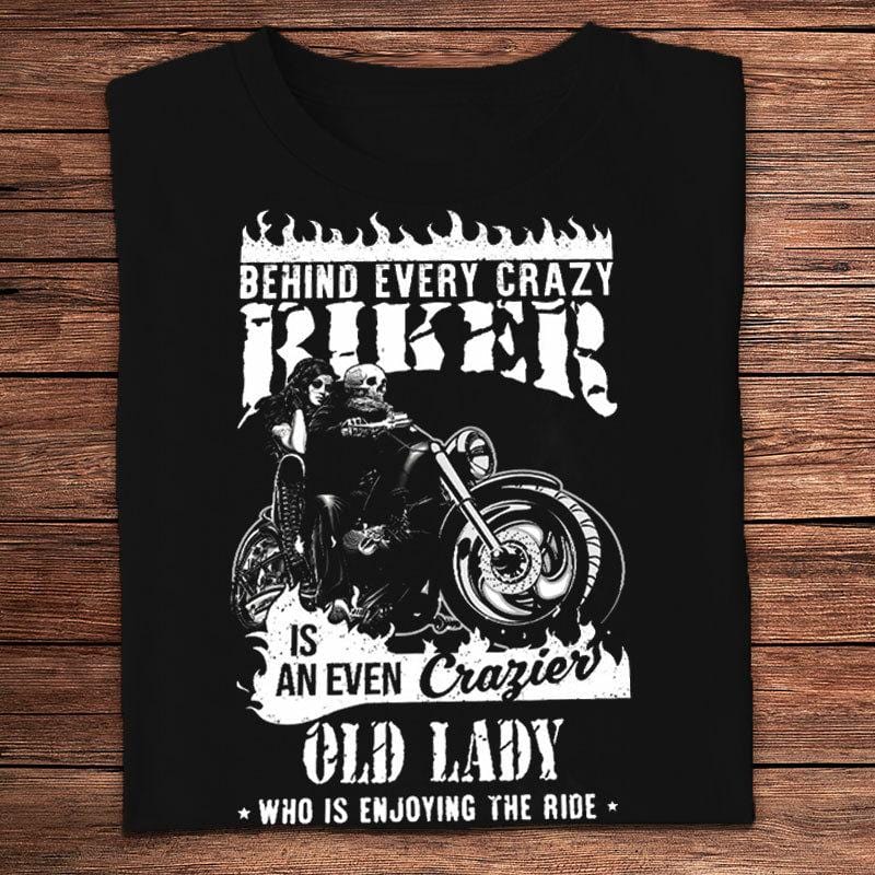 Detrás de cada motociclista loco hay una anciana aún más loca Camisetas de motociclista