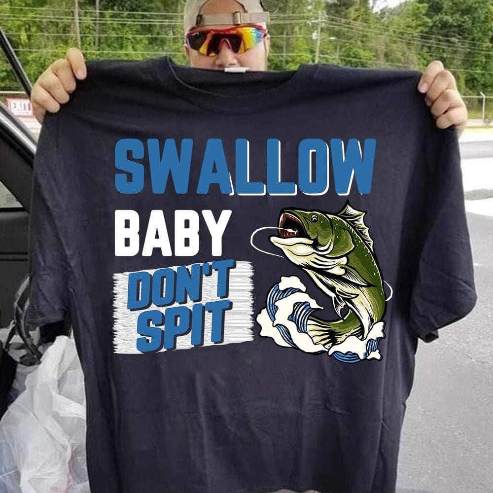 Camisetas divertidas de pesca Golondrina Bebé No escupas Hombres Mujeres