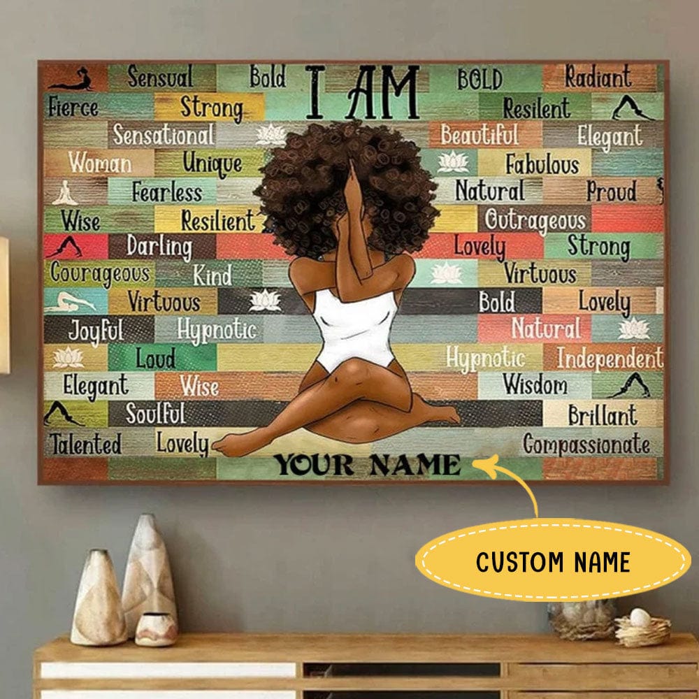 Póster de yoga personalizado de una chica afroamericana negra, lienzo