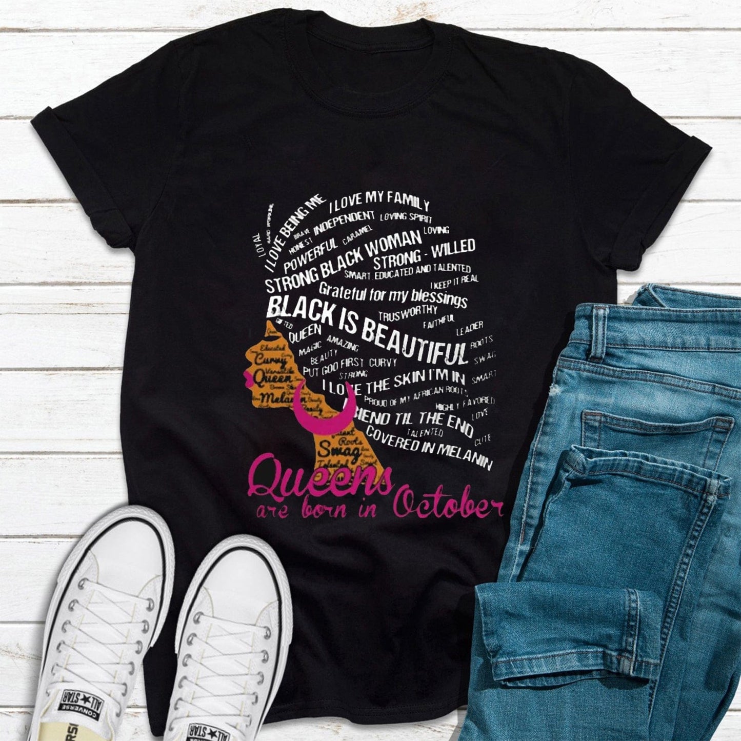 Las reinas negras nacen en octubre, camisetas de cumpleaños personalizadas, camisetas afroamericanas