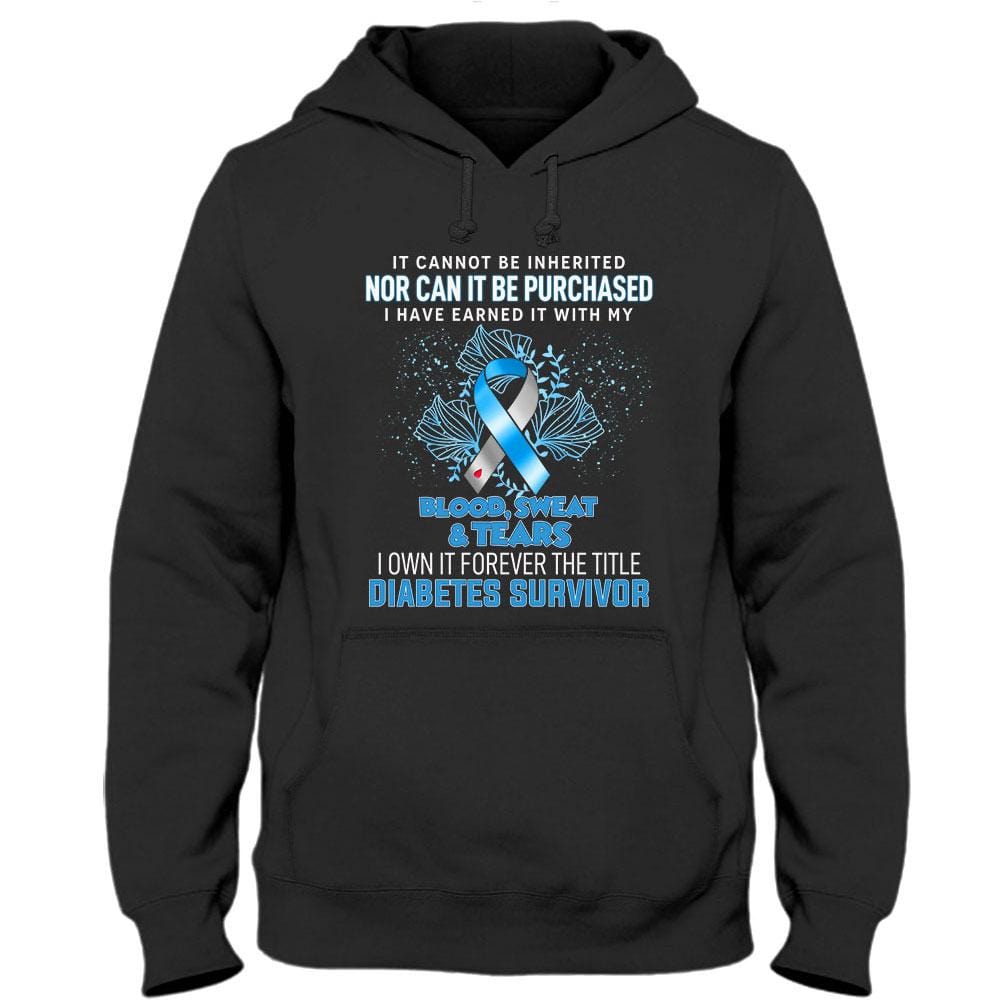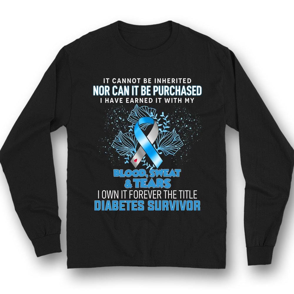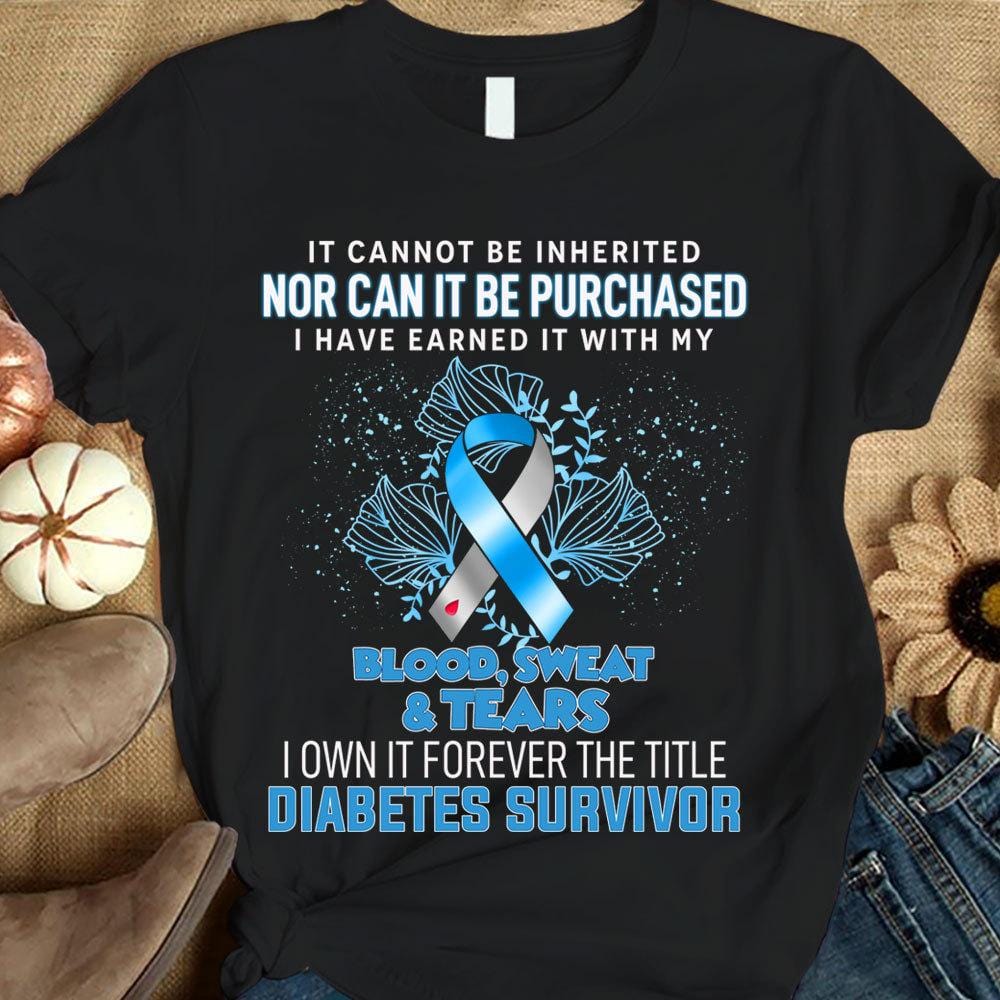 Camiseta de apoyo para sobrevivientes de la diabetes con lazo azul, sangre, sudor y lágrimas