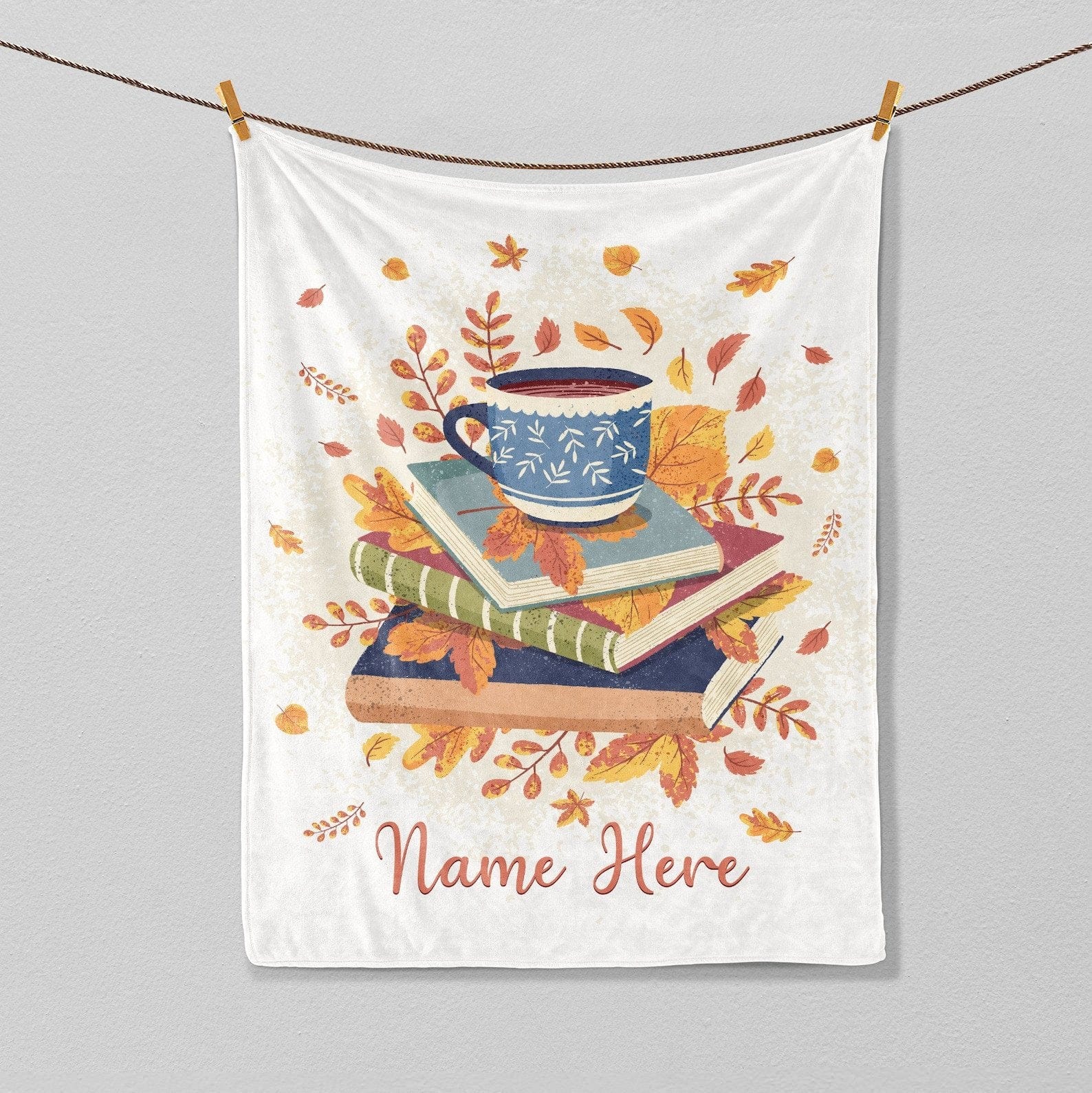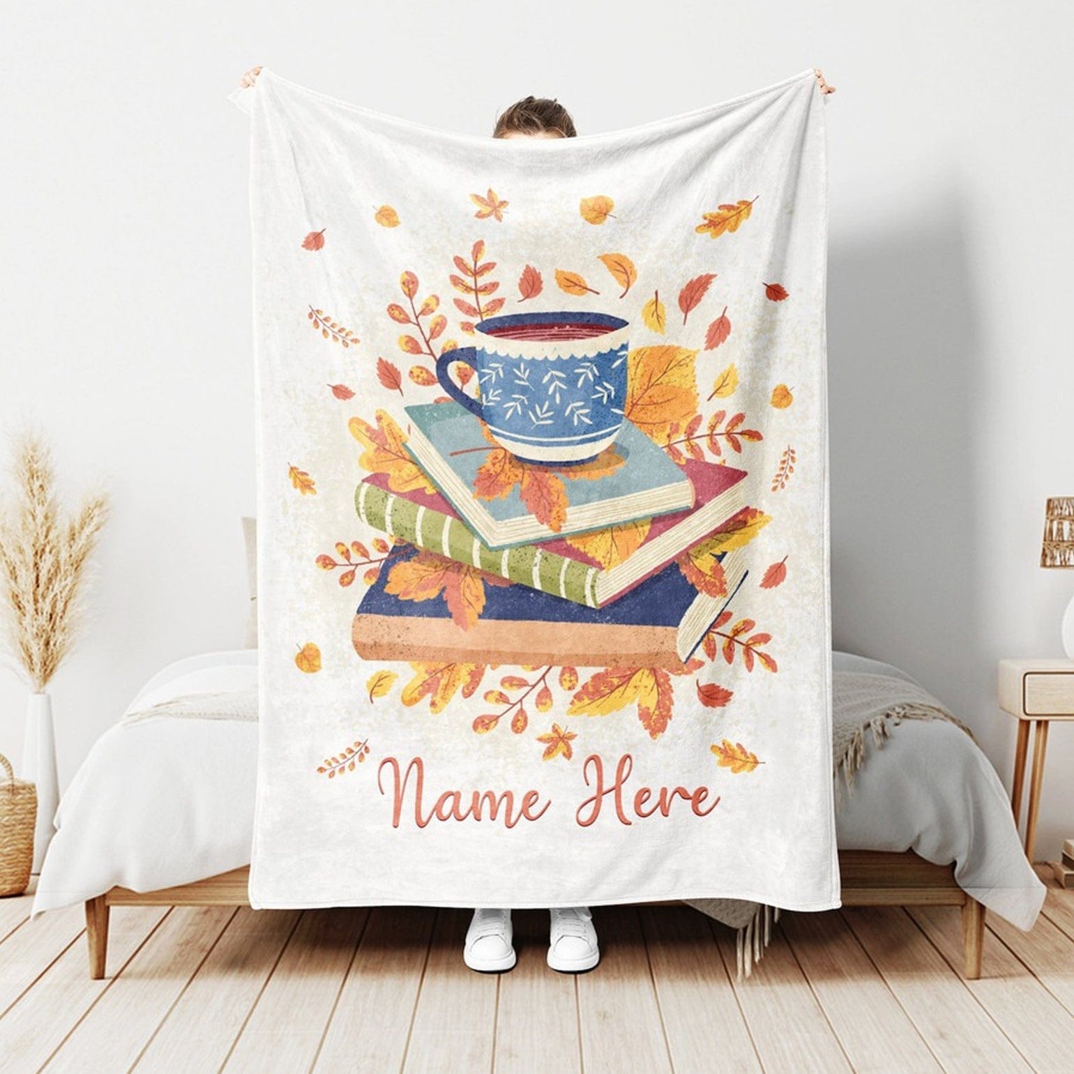 Manta de polar y sherpa con forma de libro personalizada, mantas de otoño