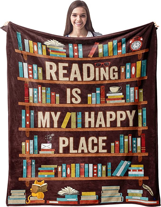 Manta de polar y sherpa de la biblioteca de libros Reading Is My Happy Place