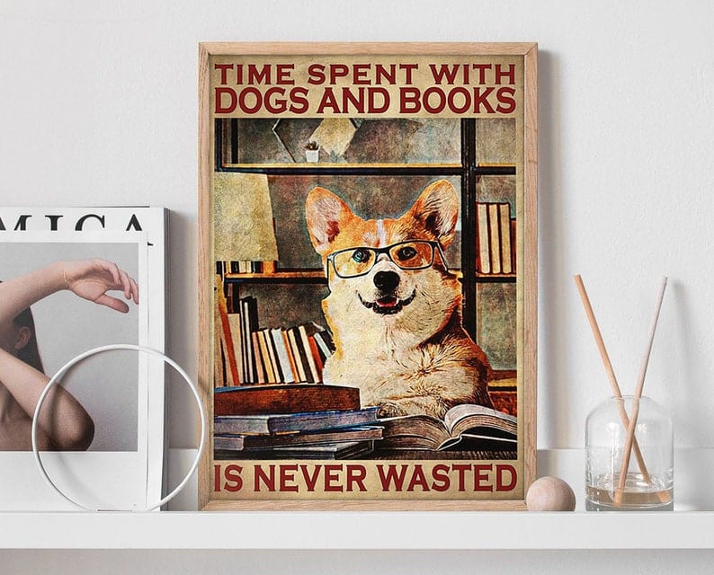 El tiempo que pasamos con perros y libros nunca es tiempo perdido. Póster de lindo Corgi leyendo un libro, lienzo