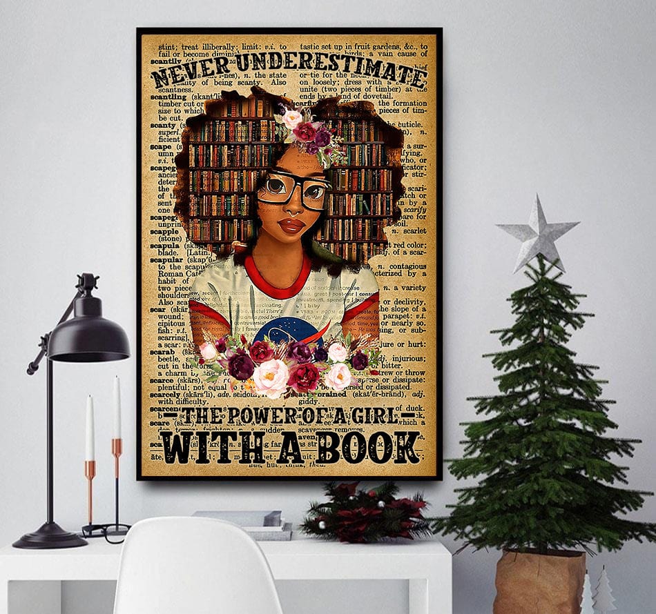 Nunca subestimes el poder de una chica con un libro Póster de chica negra, lienzo