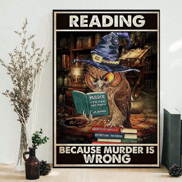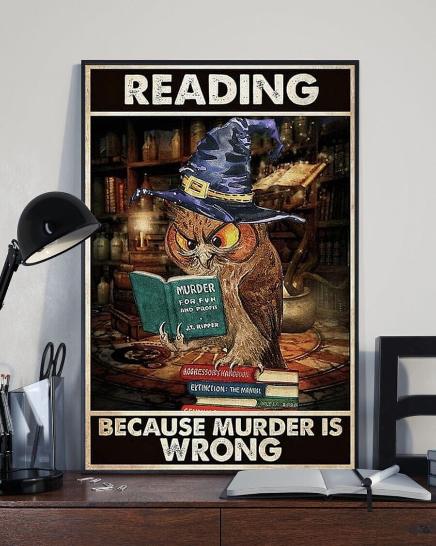 Póster de libro de lectura "Leer porque matar está mal" de Owl Reading, lienzo