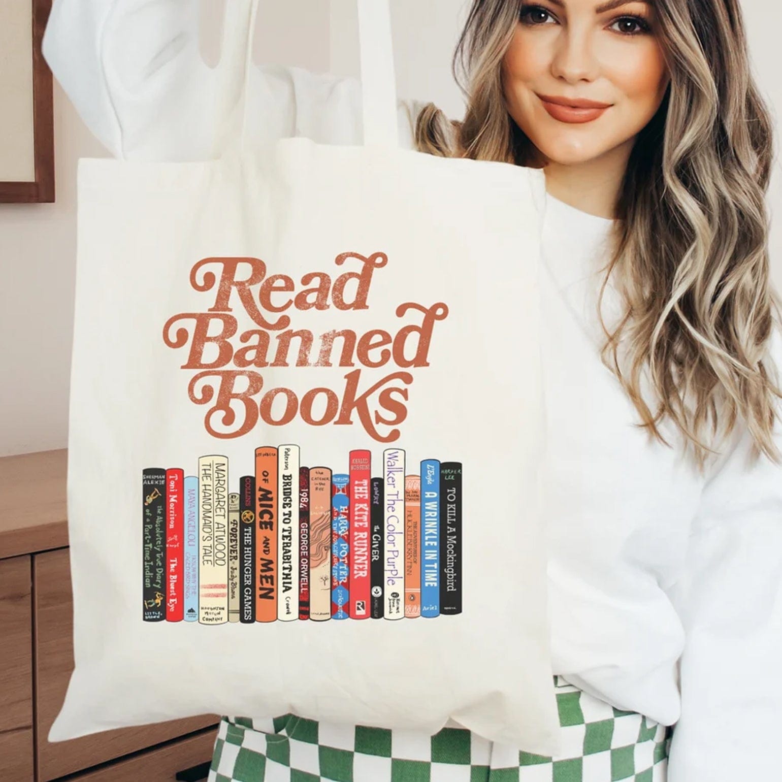 Bolsa de tela con texto "Lee libros prohibidos"