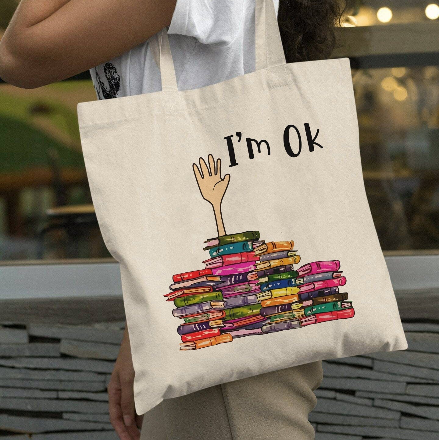 Bolsa de mano para amantes de los libros con la frase "Estoy bien"