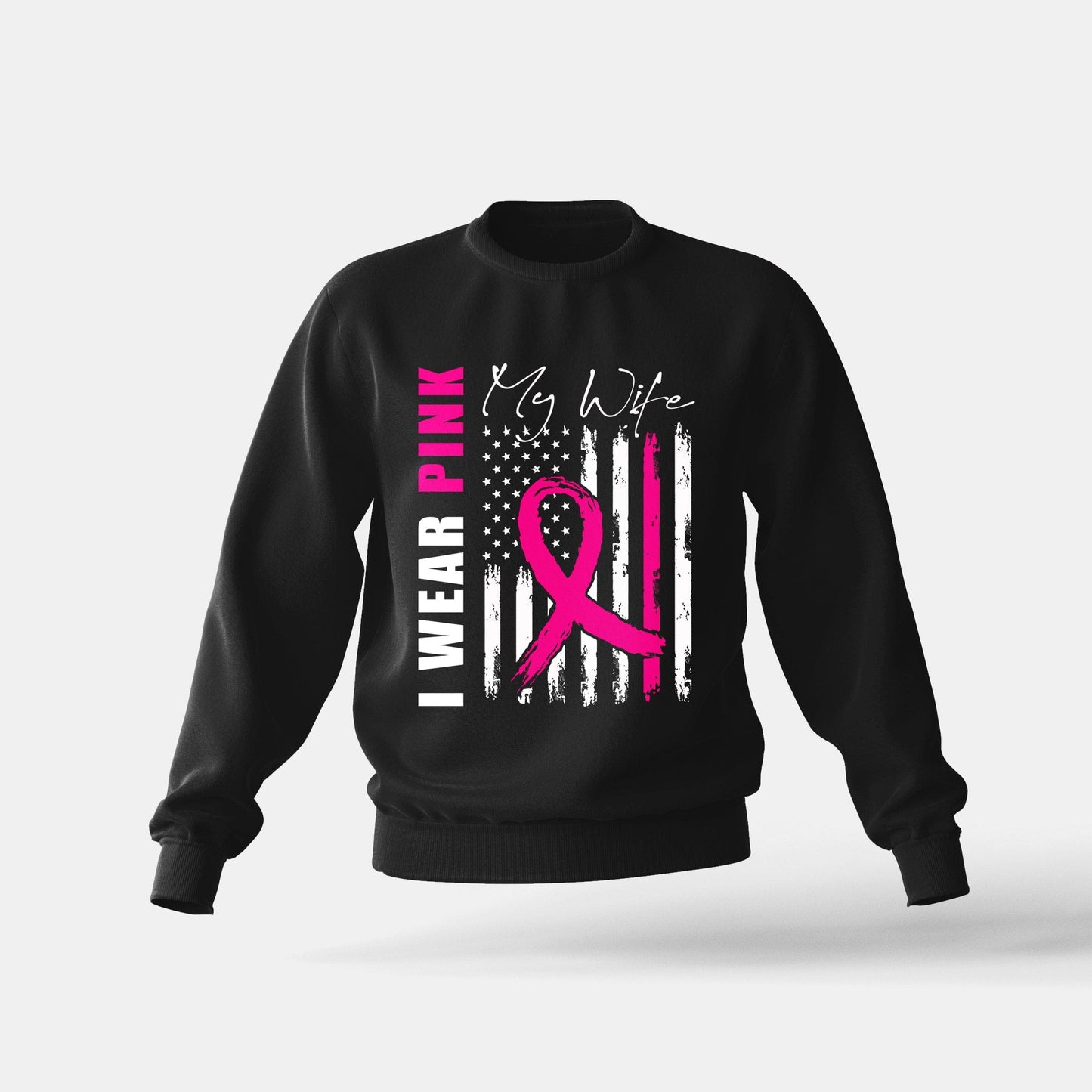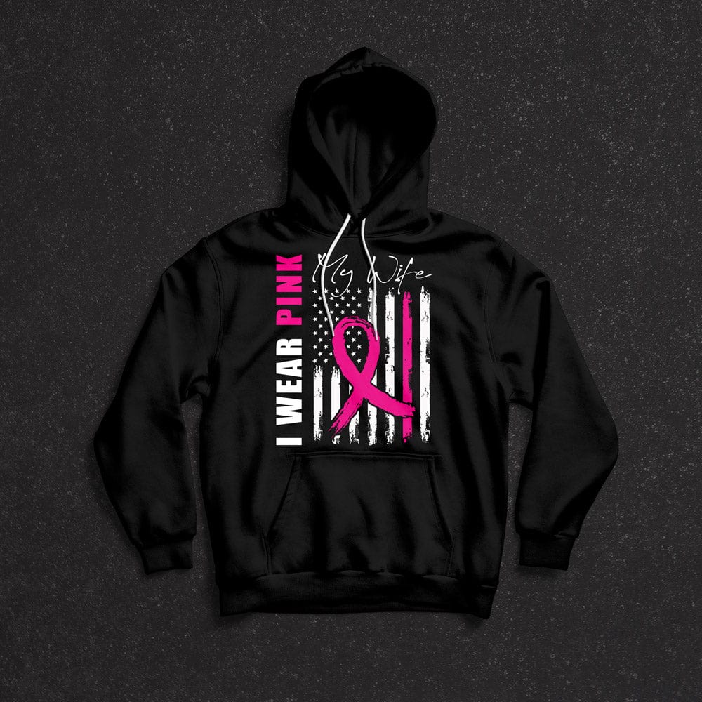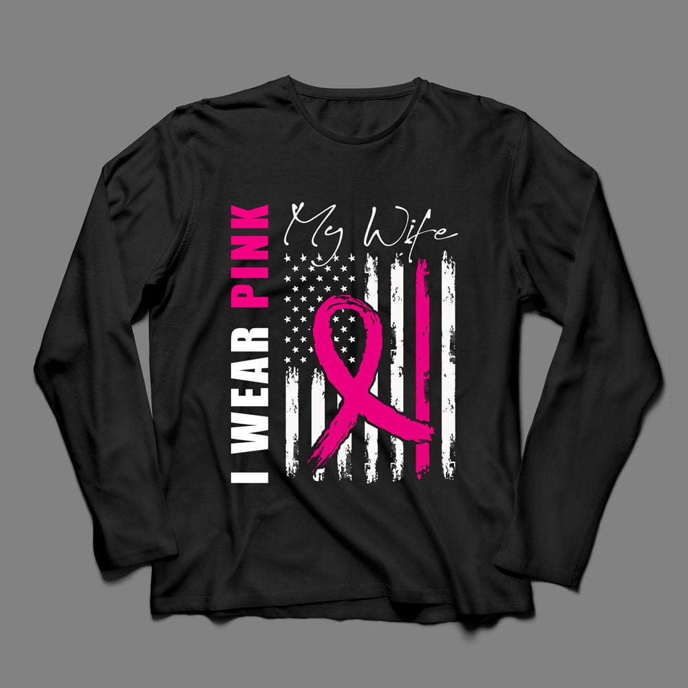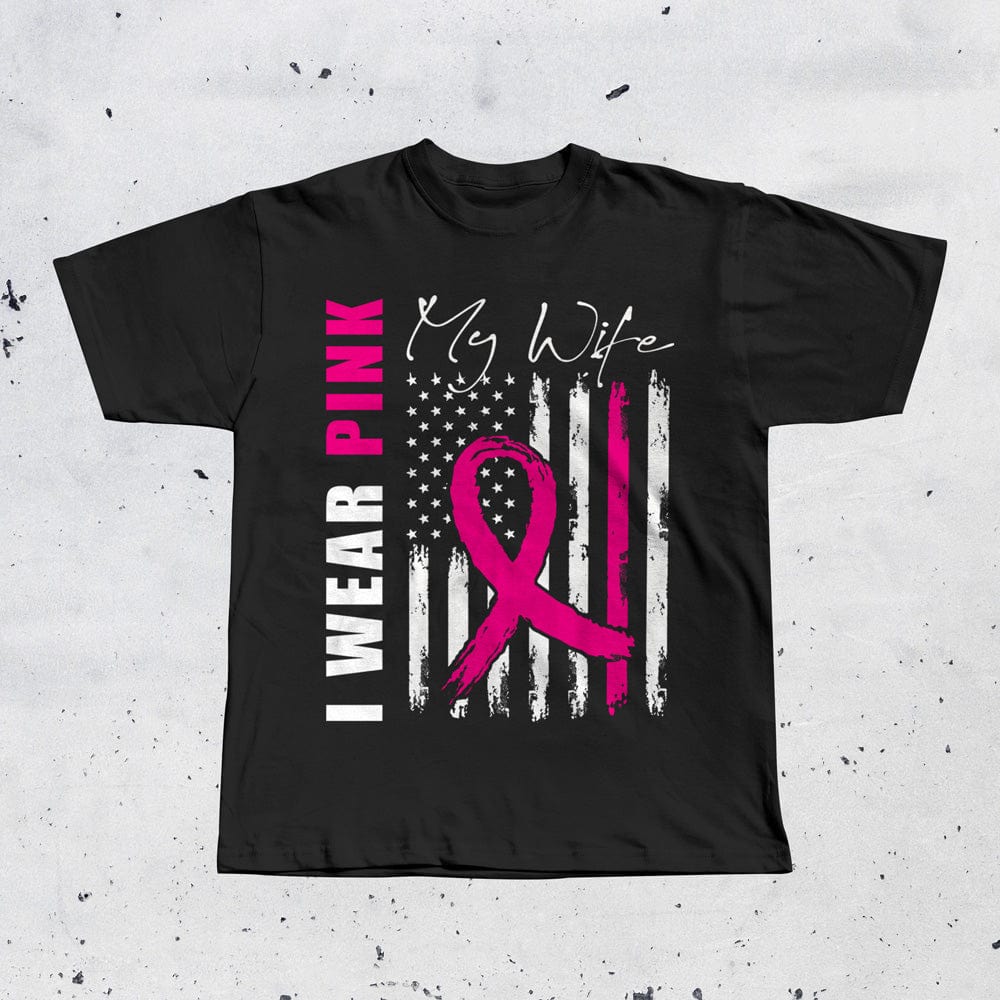 Camisetas de cáncer de mama que uso rosa para mi esposa, cinta con la bandera estadounidense, camisetas de cáncer de mama para hombres