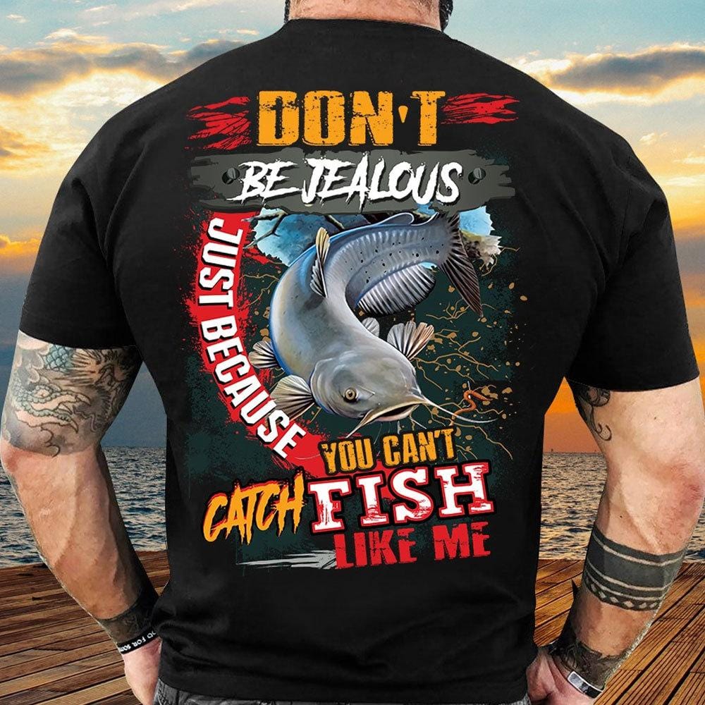 Camiseta de bagre No tengas celos, no puedes pescar peces como yo Camisetas de pesca geniales