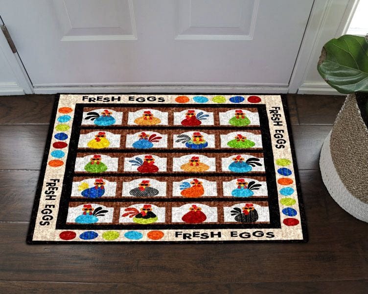 Felpudo con diseño de pollo y huevos frescos