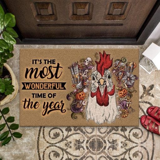 Felpudo de pollo con el mensaje "Feliz Halloween, el momento más maravilloso"