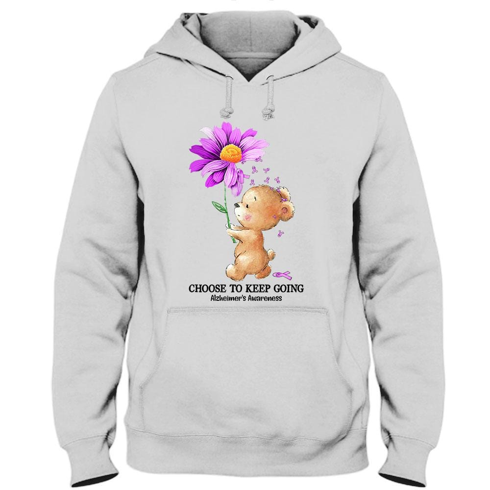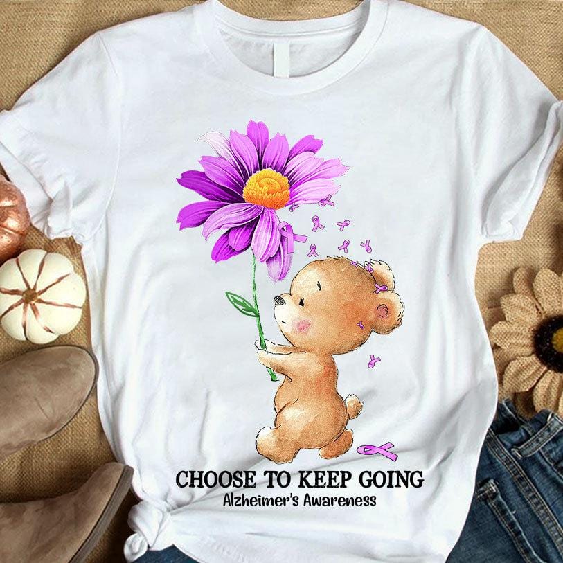 Elige seguir adelante, camiseta de concienciación sobre el Alzheimer, oso girasol morado