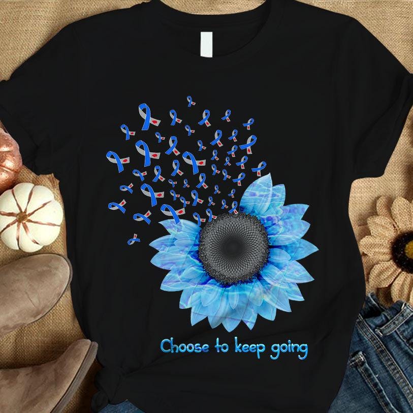 Elige seguir adelante, camiseta de apoyo a la concienciación sobre la diabetes con lazo de girasol