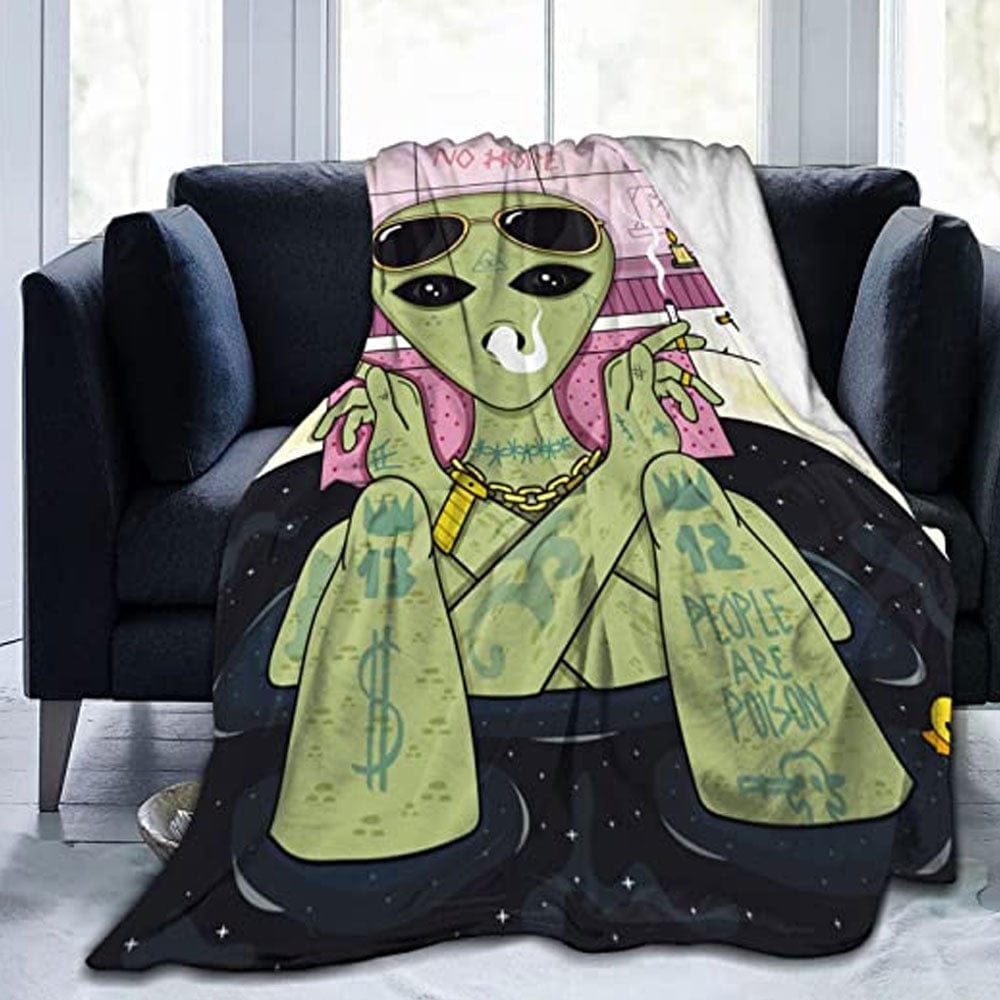 Manta de vellón y sherpa con diseño de extraterrestre