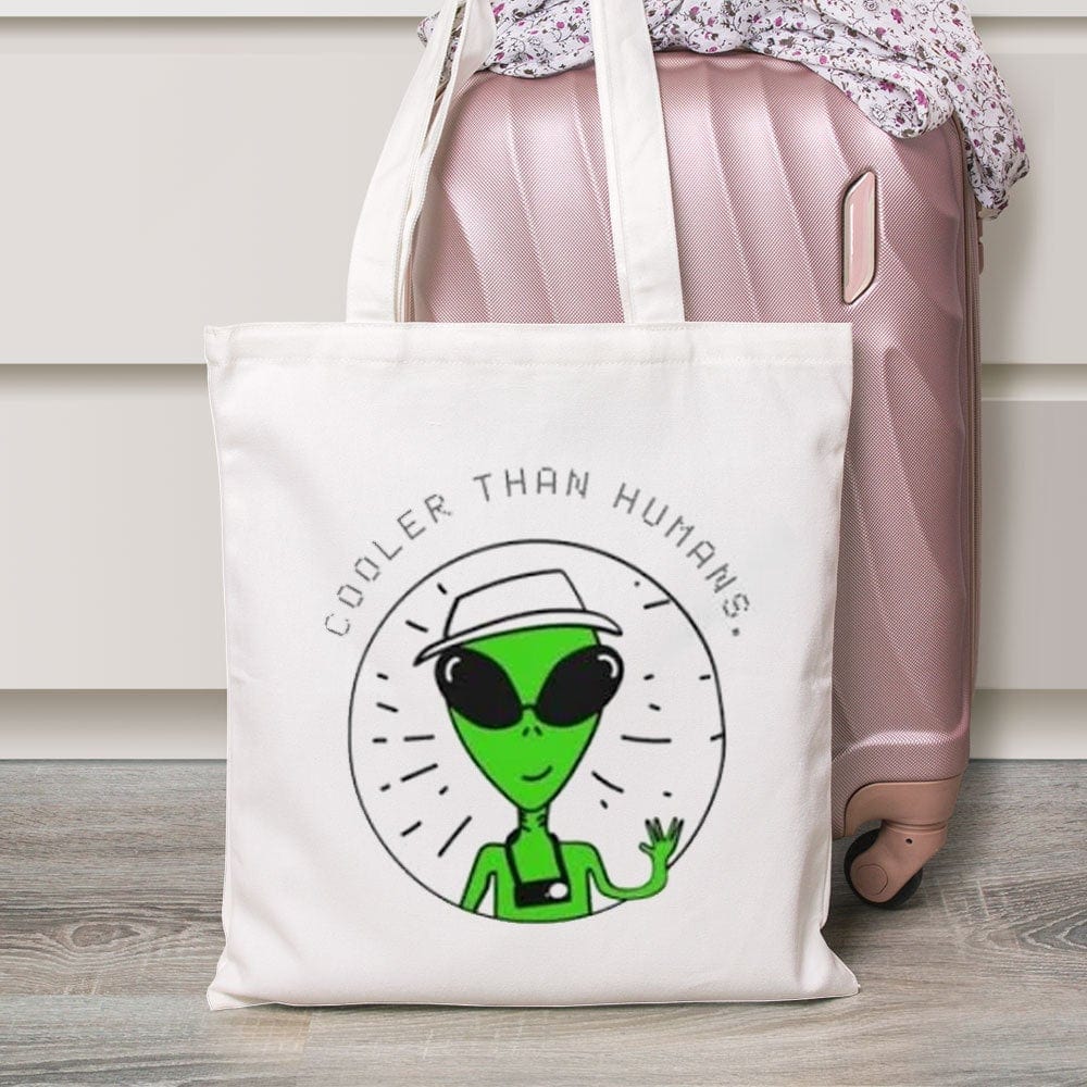 Bolsa de mano divertida con diseño de extraterrestre más genial que los humanos