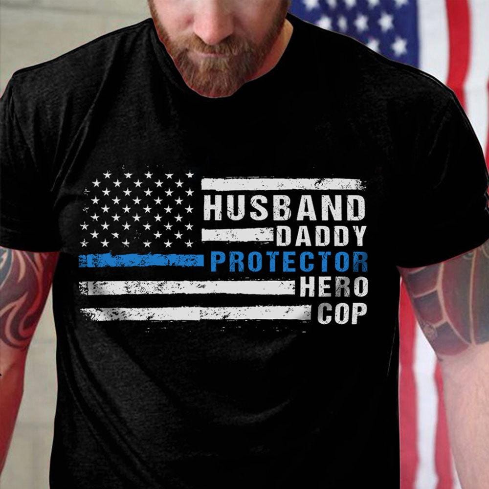 Camiseta de policía con el mensaje "marido, papá, protector", camisetas de línea azul fina, camiseta de policía
