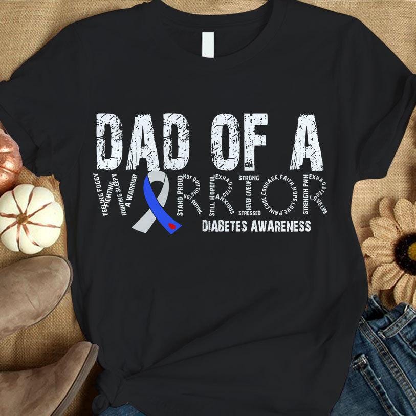 Camiseta de apoyo para la concienciación sobre la diabetes con el lazo azul de papá de un guerrero