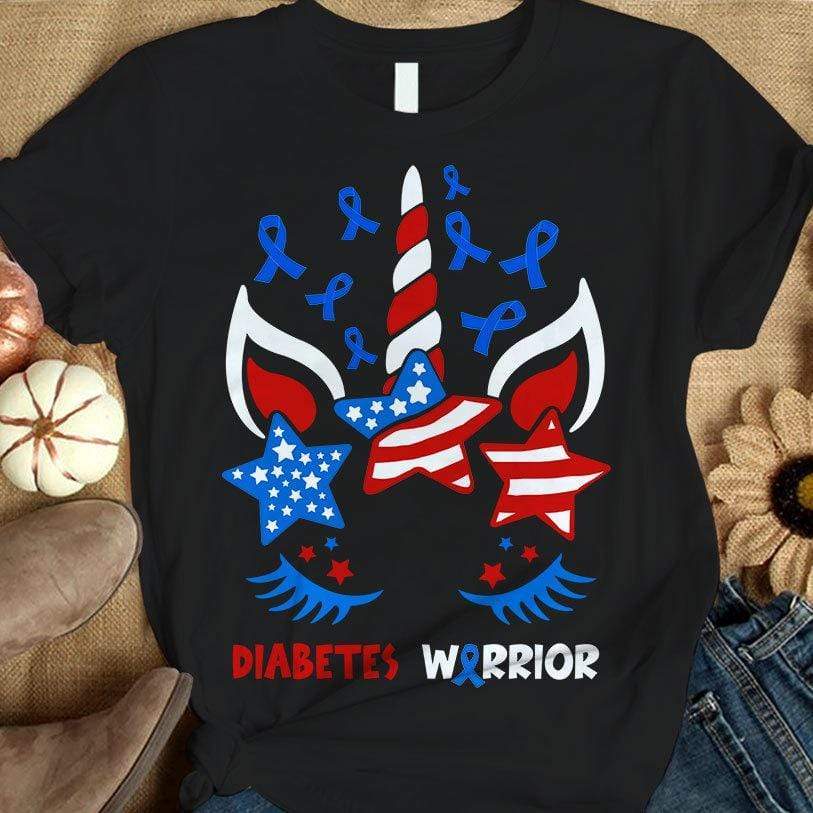 Camiseta de apoyo a la concienciación sobre la diabetes, divertida con la bandera de la guerrera de la diabetes y la estrella de la cinta
