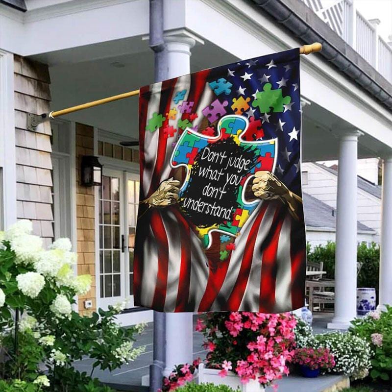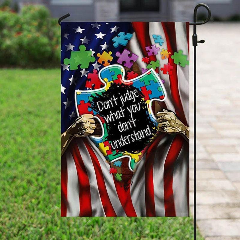 No juzgues lo que no entiendes, pieza de rompecabezas, bandera estadounidense de concienciación sobre el autismo, bandera para casa y jardín